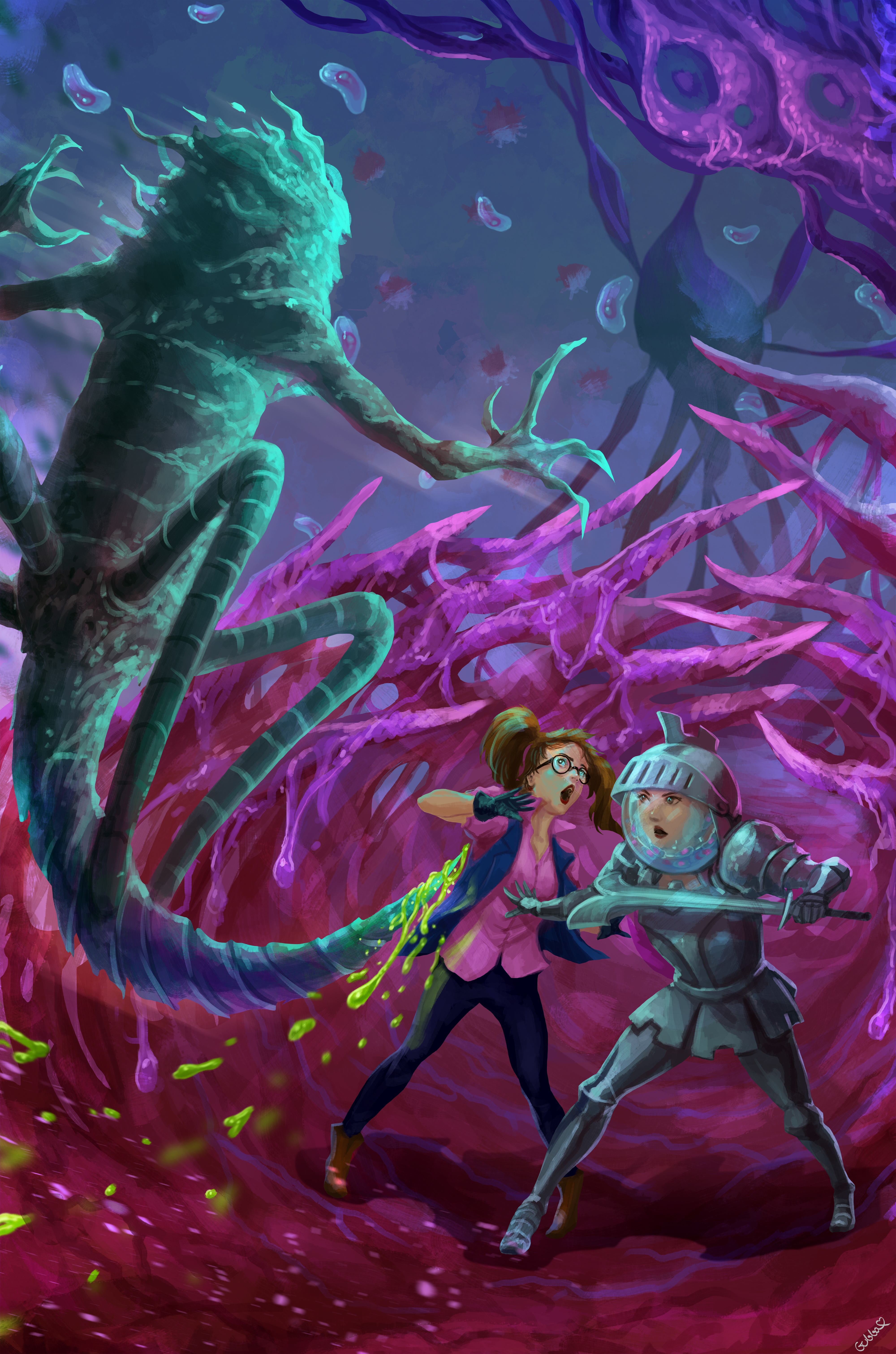 An evil virus pounces at Frankie Ravens and her antibody guard. Will they survive? The Virus is an original artwork by GubbaTV, and part of the Frankie Ravens Collection. Signed NFT .JPG 4000x6045px
