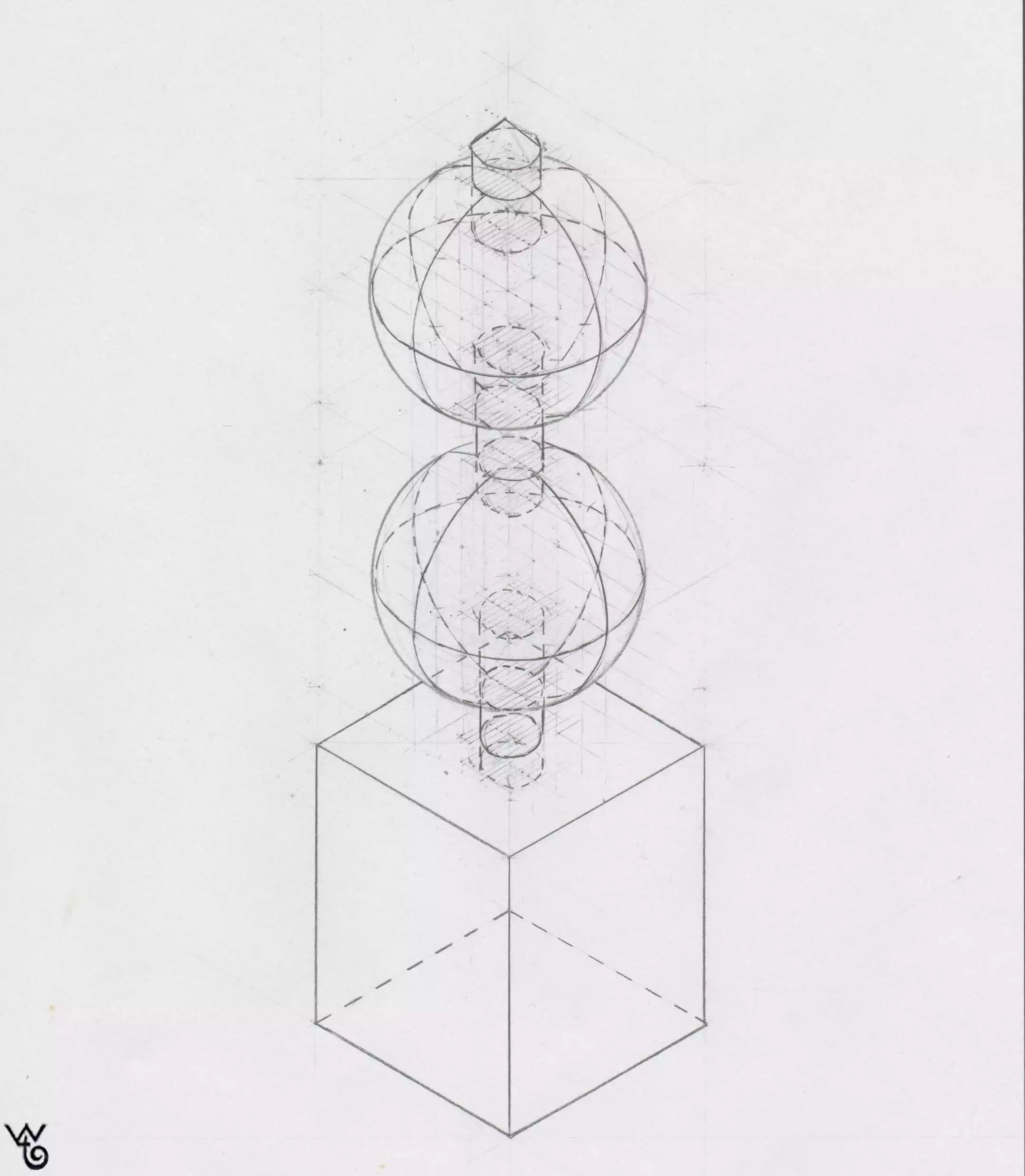 Construction drawing with pencil and ruler on paper