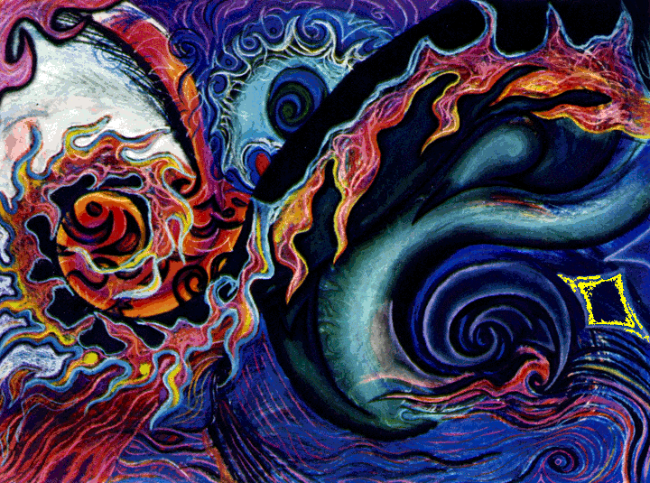 Fire Air Water Earth is a series of pastel drawings I did while traveling with fellow deadheads on the last summer tour of the Grateful Dead, 1995, transformed into animated digital drawings...