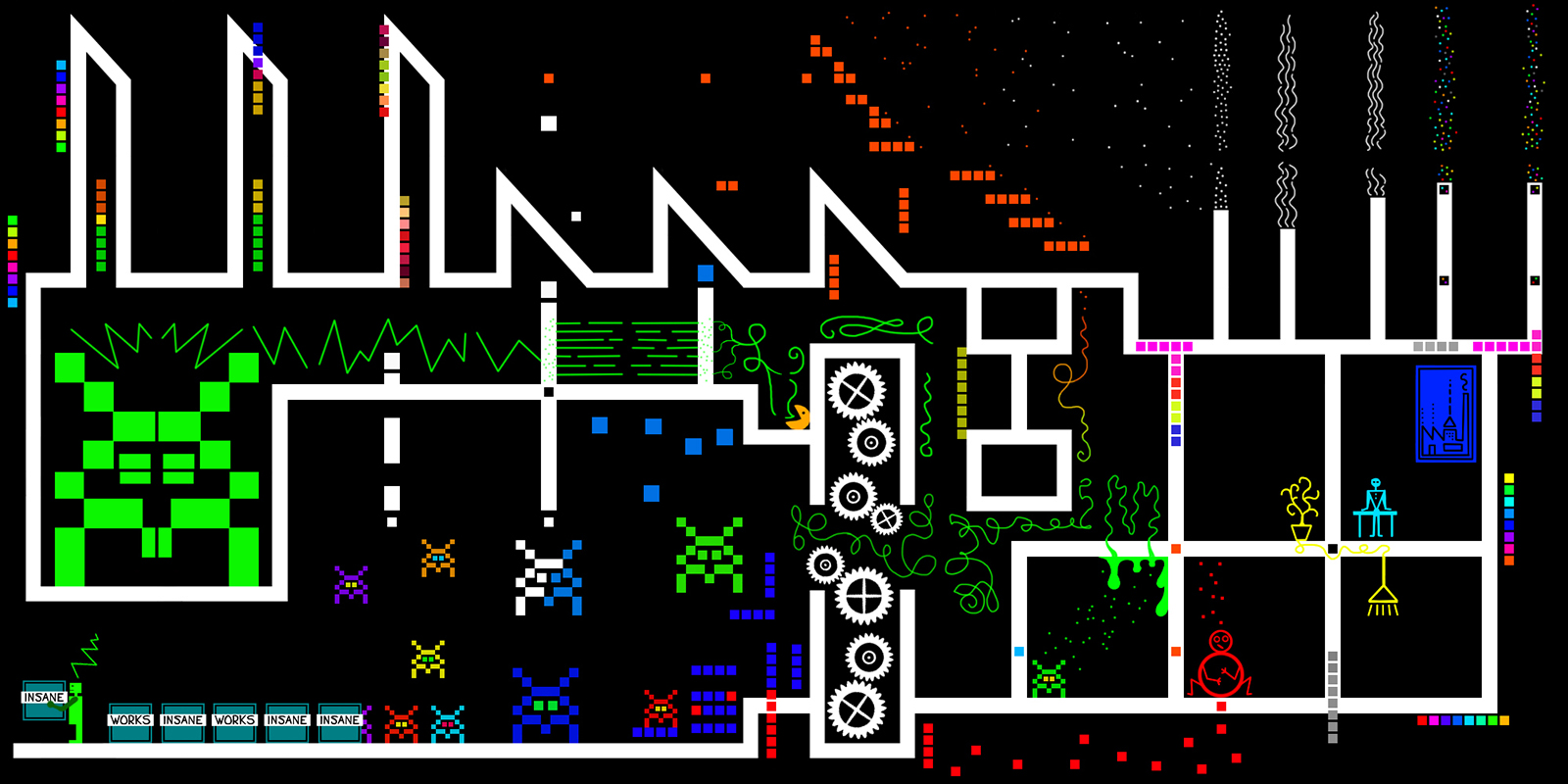 This art is made out of equal sized squares and is part of ArtSquares collection. All the pieces are unique. You can reassemble it and make any modifications to it using parts from other ArtSquare pieces. Do it easily at www.insaneworks.fi/artsquares or with any image processing program. You may display the reassembled work as part of your collection. Meaning: use the art you bought as stated in private reproduction rights but with the extra right that you can decide which pieces you use, make a new image by reassembling the squares and displaying that new art. Small file: 536 kb, 1600 x 800 px, RES 100. Unlockable zip file: 1,57 Mb containing art squares 67-116 (each 200 x 200 px, RES 300) and factory.jpg 669 kb, 2000 x 1000 px, RES 300.