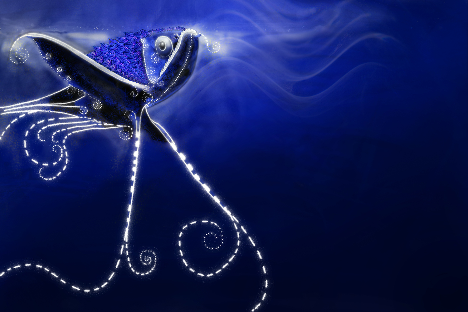 Sea monster looks sad, blue and angry. But it assures to you that it isn't all that. It's mood is festive. But let's not believe the sea monster. It just tries to lure you towards it and then... !!!!