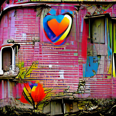 Abandoned Hearts show the juxtaposition of decaying ruins and lost love. An emotional state thrown up against physical matter. Love may mean something different for some than it does for others. All love needs care and repair or it may dwindle and decay. Abandoned Heart #4 : Pink Siding. 400x400px. 2021.