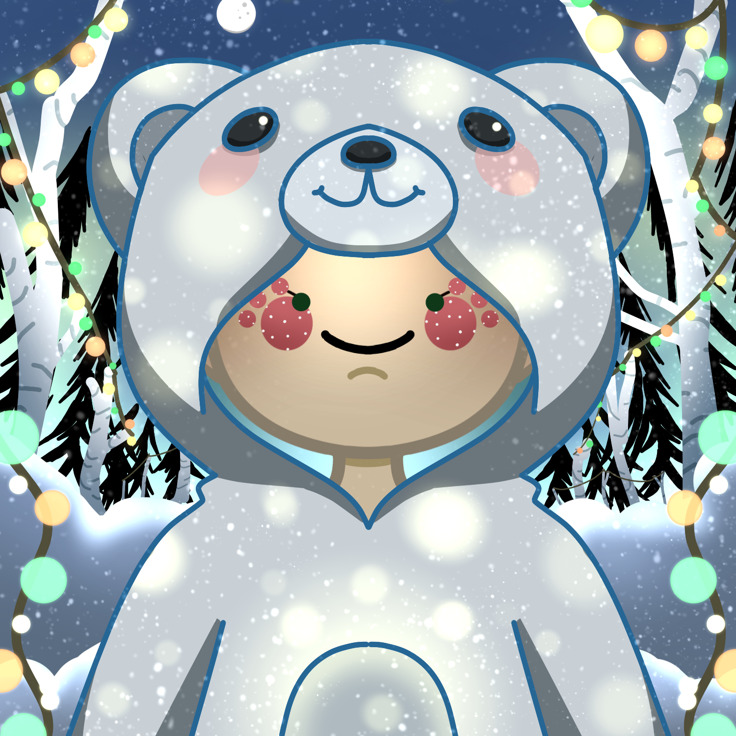 Cheerful, glowing polar bear bright with Christmas spirit. 🎄✨