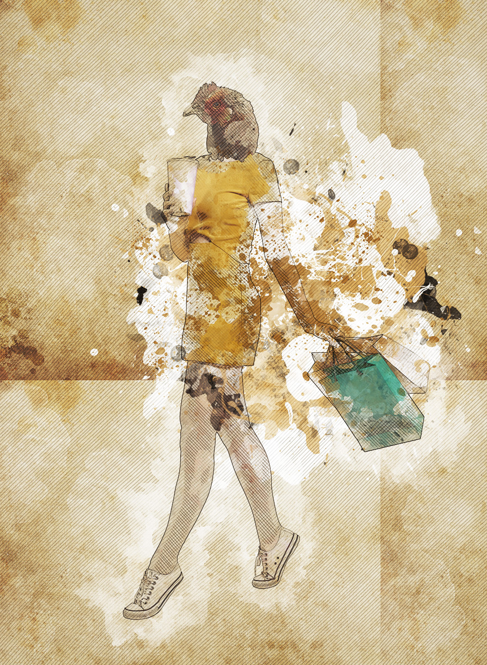 Madam Kiki likes to go shopping. This is part of the series "Strange fauna", a series that tries to explore the psychology of human fauna in a visual way. When you buy this work you receive a JPG copy with a dimension of 2500px x 3415px.