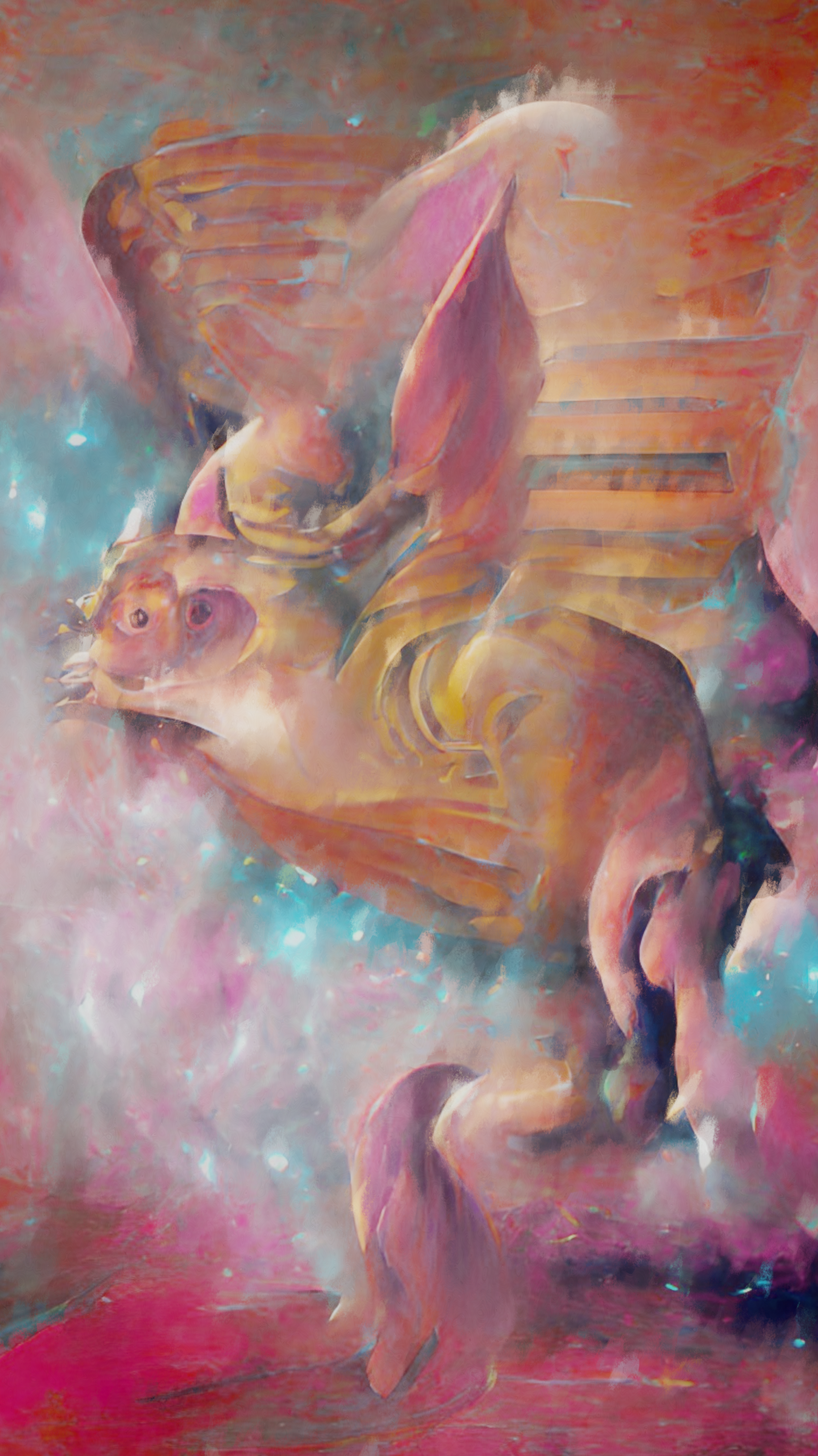 Hybrid art, made using python script generated art, digital painting and collage, 3D and procedural texturing. "Rightful", illustration 5/5 of the Annunaki Contemplation collection 2880*5120