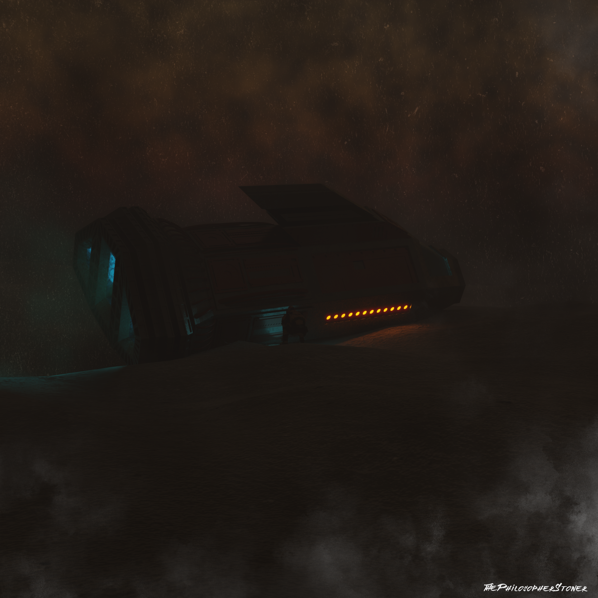 Made using Blender 2.9 and GIMP for the composition. 1920x1920. Unique edition Comes with an exclusive 1920x1080 downloadable redesign of the scene, adapted for computer desktop!
