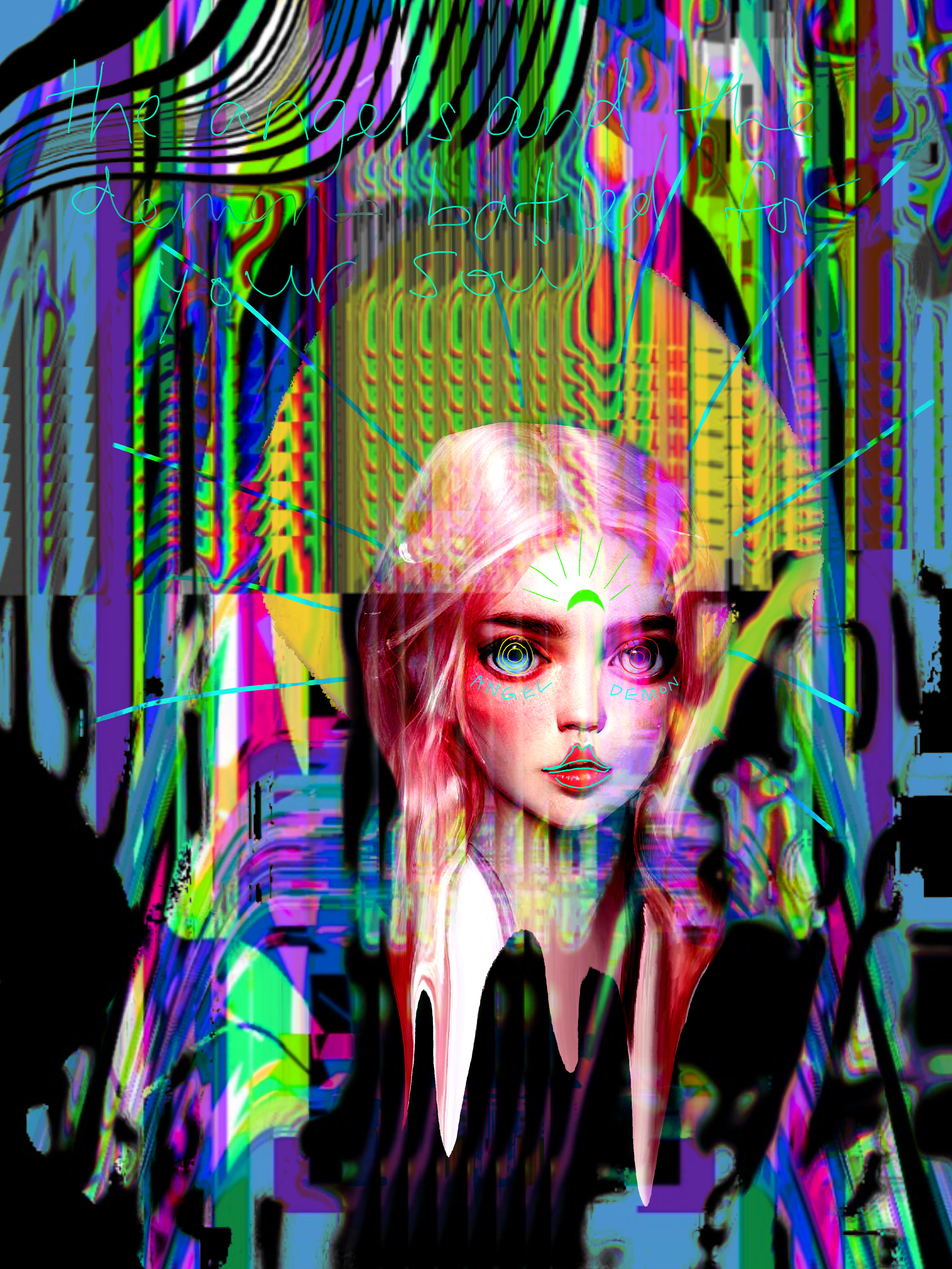 Angels and Demons are battling for your soul / collage / layering / digital paint / PNG 3k x 4k