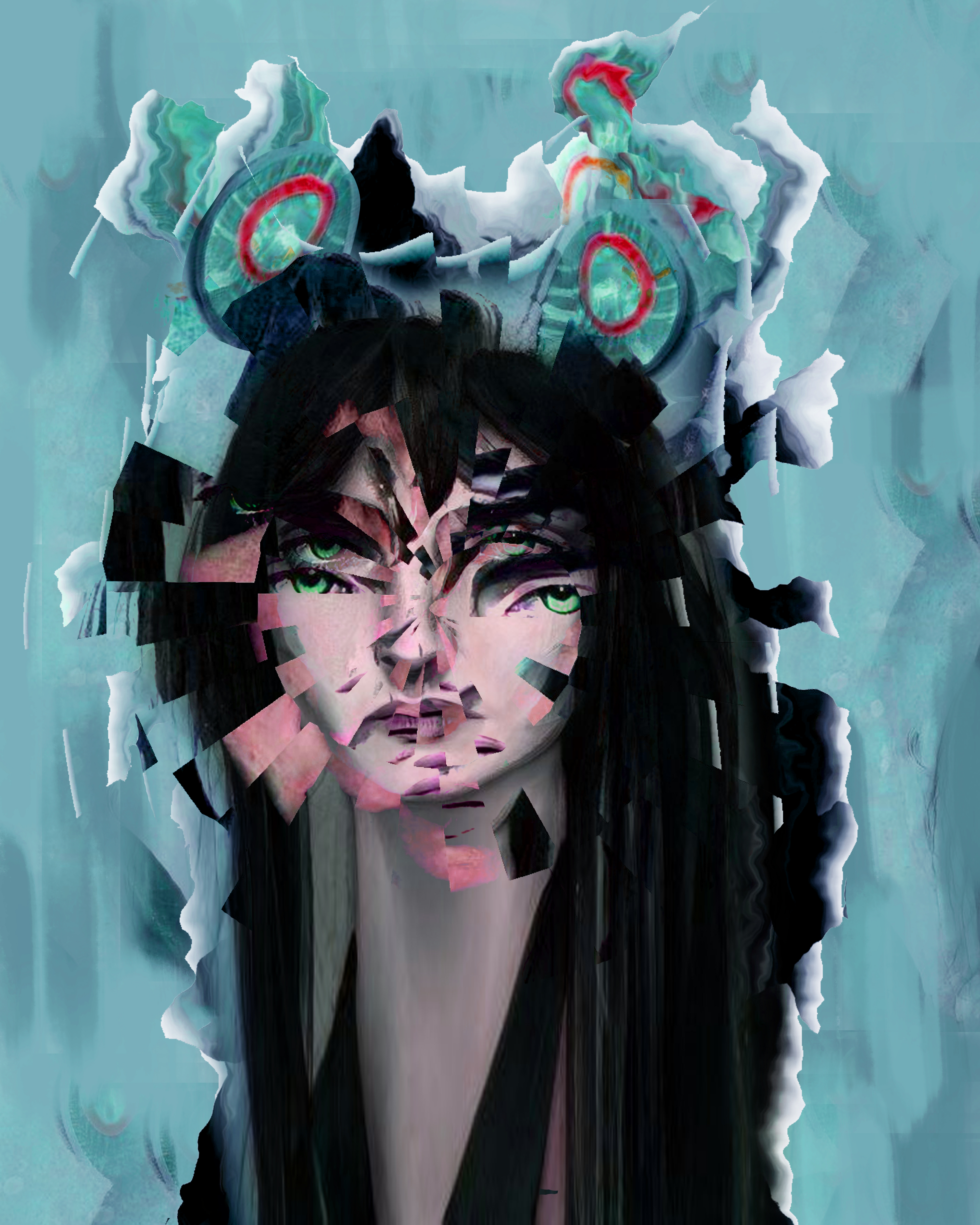 Like a Broken Mirror / The mirror is dirty, loathsome and deep, But she has promises to keep/ Part of the Alien Collage collection / Julia K. Ponsford 2020