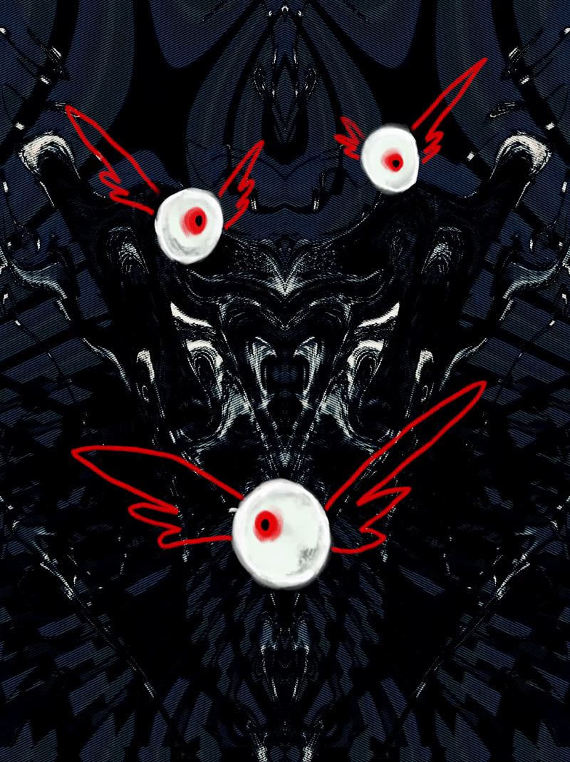 THE EYES FLY AT MIDNIGHT / A mix of collage/ photomosh video / digital paint and animation / GIF 800 × 1068
