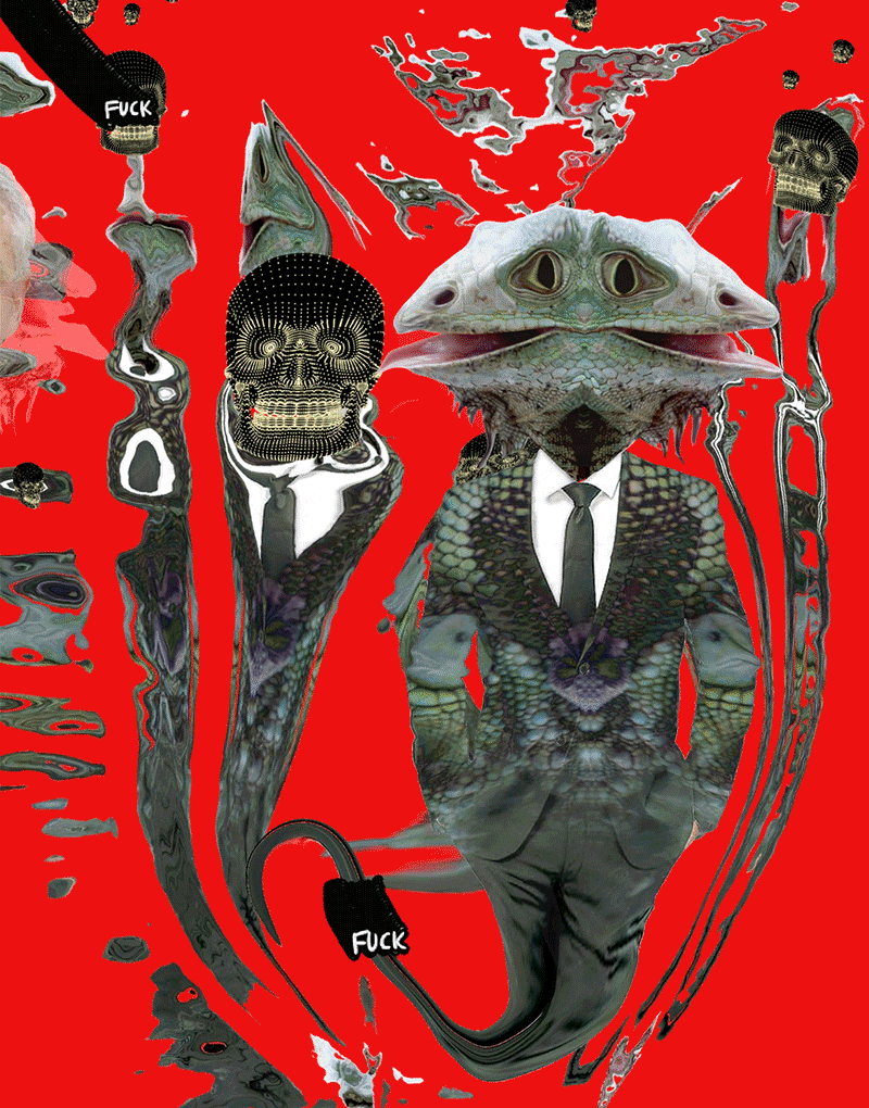 The Lizards of Wall Street is a 1/1 edition GIF created by JULIAKPONSFORD X ELGEKO during the online art show. Inspired by the recent wallstreetbets $GME happenings. Made exclusively for the F*CK WALL STREET exhibit.