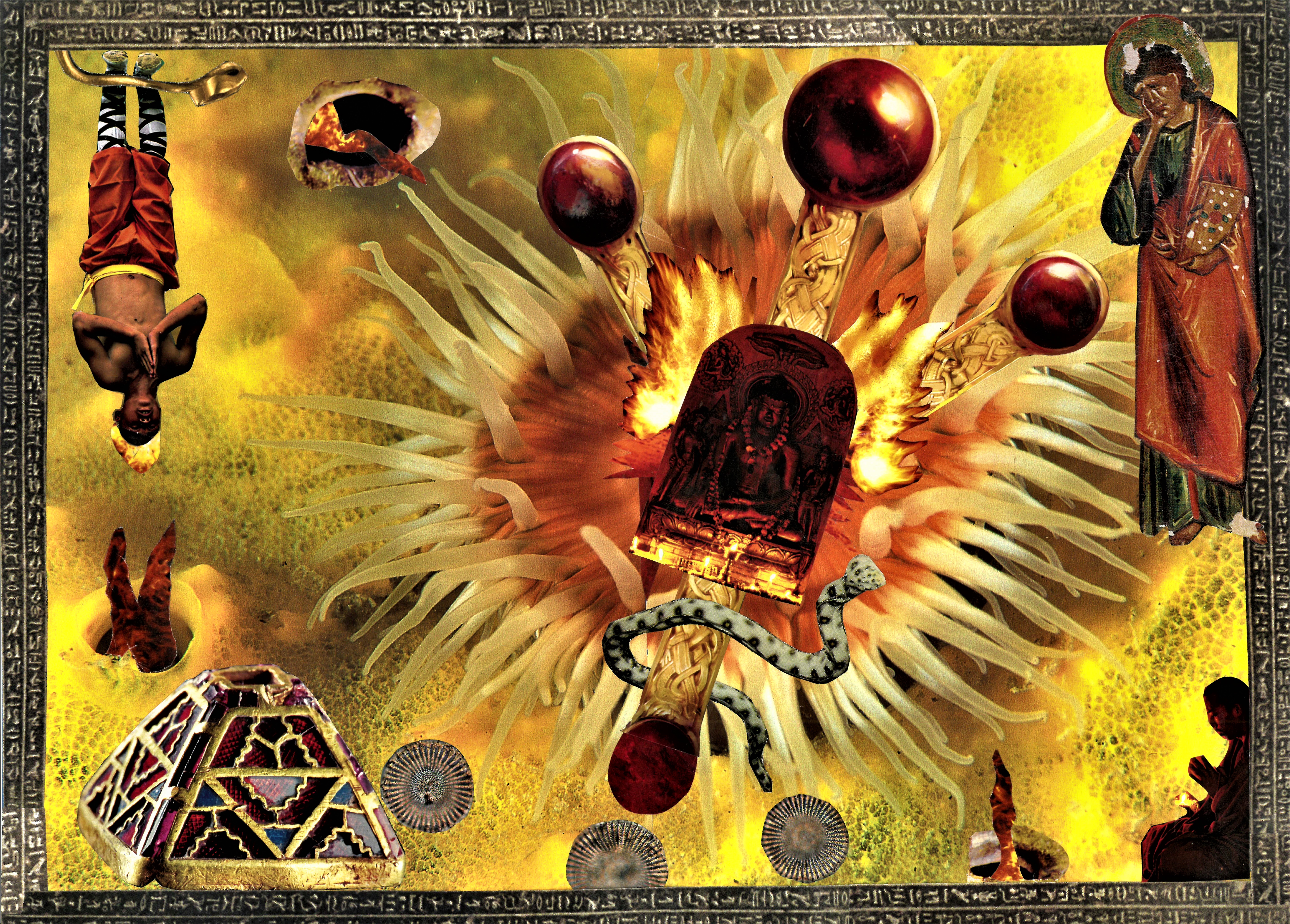 Hand made paper collage from found pictures, using scissors and glue. Then scanned to upload and mint as NFT.
