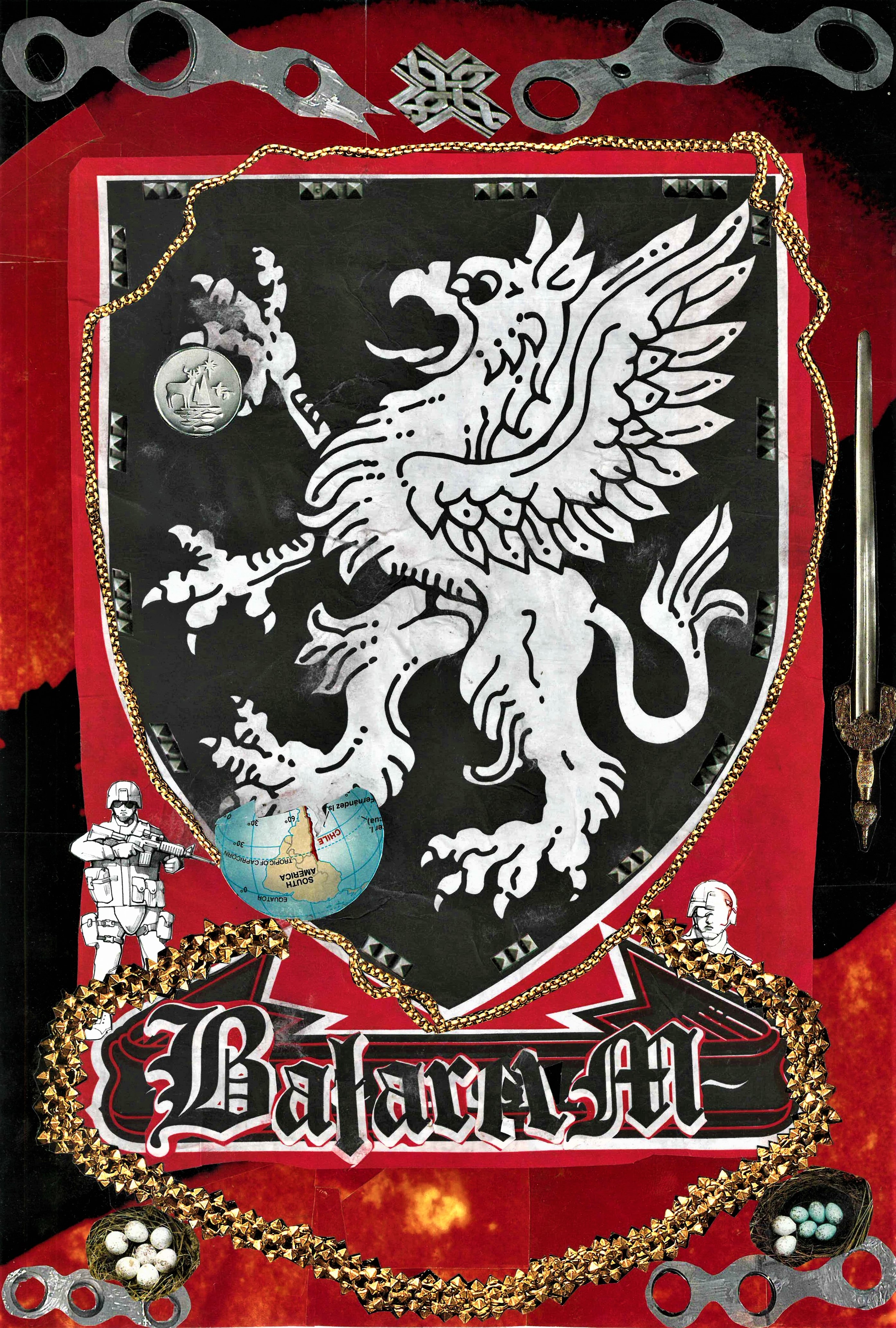 Handmade paper collage using found pictures, glue and scissors. Then scanned to upload and mint as NFT. War has begun. Putin invades Ukraine and so the battalions are on the march. Nationalist base chakra fervor ignites.