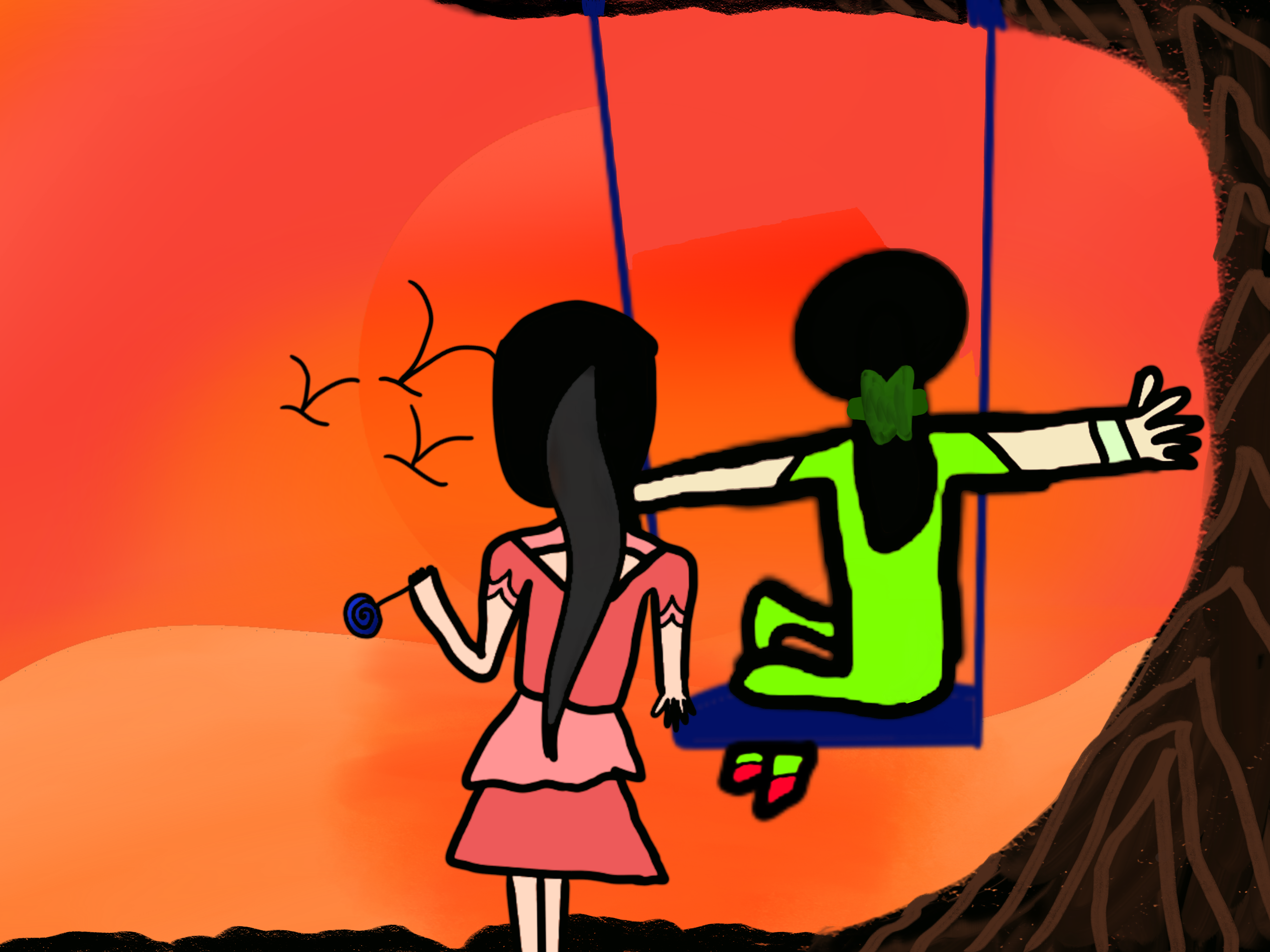 I drew this all by myself in my Sketchbook iOS app, and I think this is my favorite sunset/sunrise drawing. The size is 4000 x 3000px. The girl in the pink dress is going to give a lollipop to her sister. The girl sitting on the swing is looking at the birds going back to their nests.