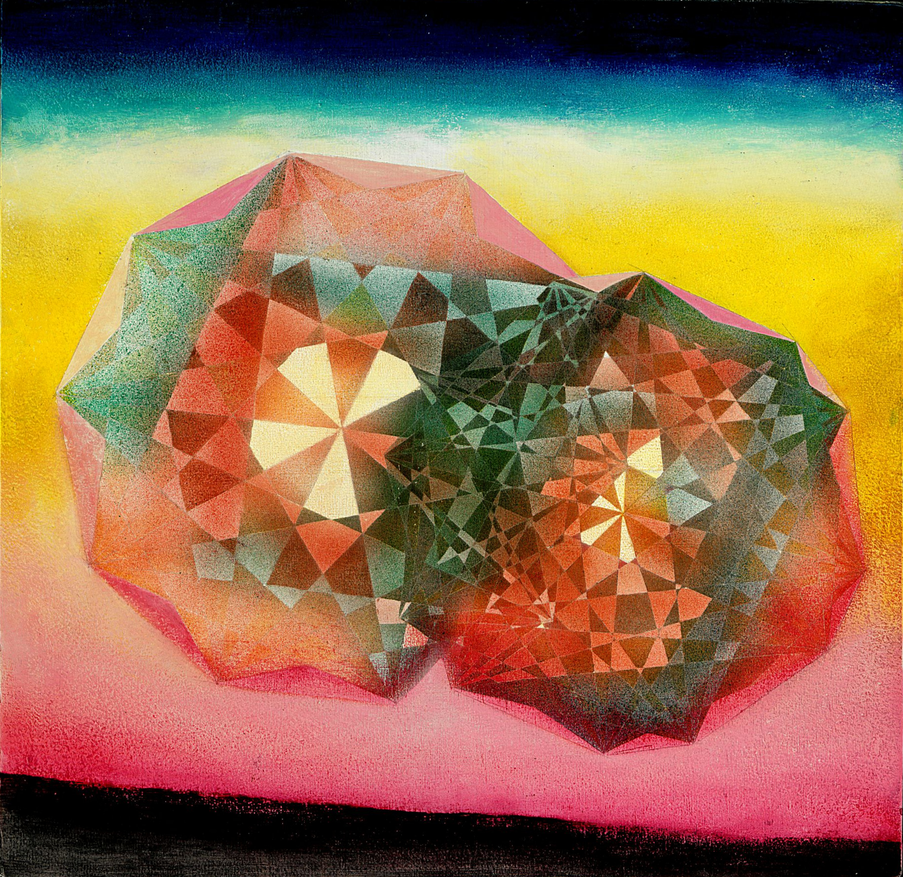 #Tafelmalerei auf #Holz, Orginalgröße: 35x35cm, gezeichnet wurde mit Silberstift auf Pappelhol, die Polygone gehen ineinader auf, und überlagern ihre Iterationen. Es könne ein Liebespaar darstellen, die zwar unterschiedlich beschaffen sind, sich jedoch in der Mitte doch vereinen, umrahmt von romantischen Farben eines #Sonnenuntergangs und einer #Landschaft. Das Vorschaubild ist stark verkleinert und mit einer schwarzen Copyrightschrift versehen. Als Tokenasset bekommen Sie eine 4,2 große Datei, ein reprofähiger Scan vom Orinal Gemälde ohne schwarze Schrift.