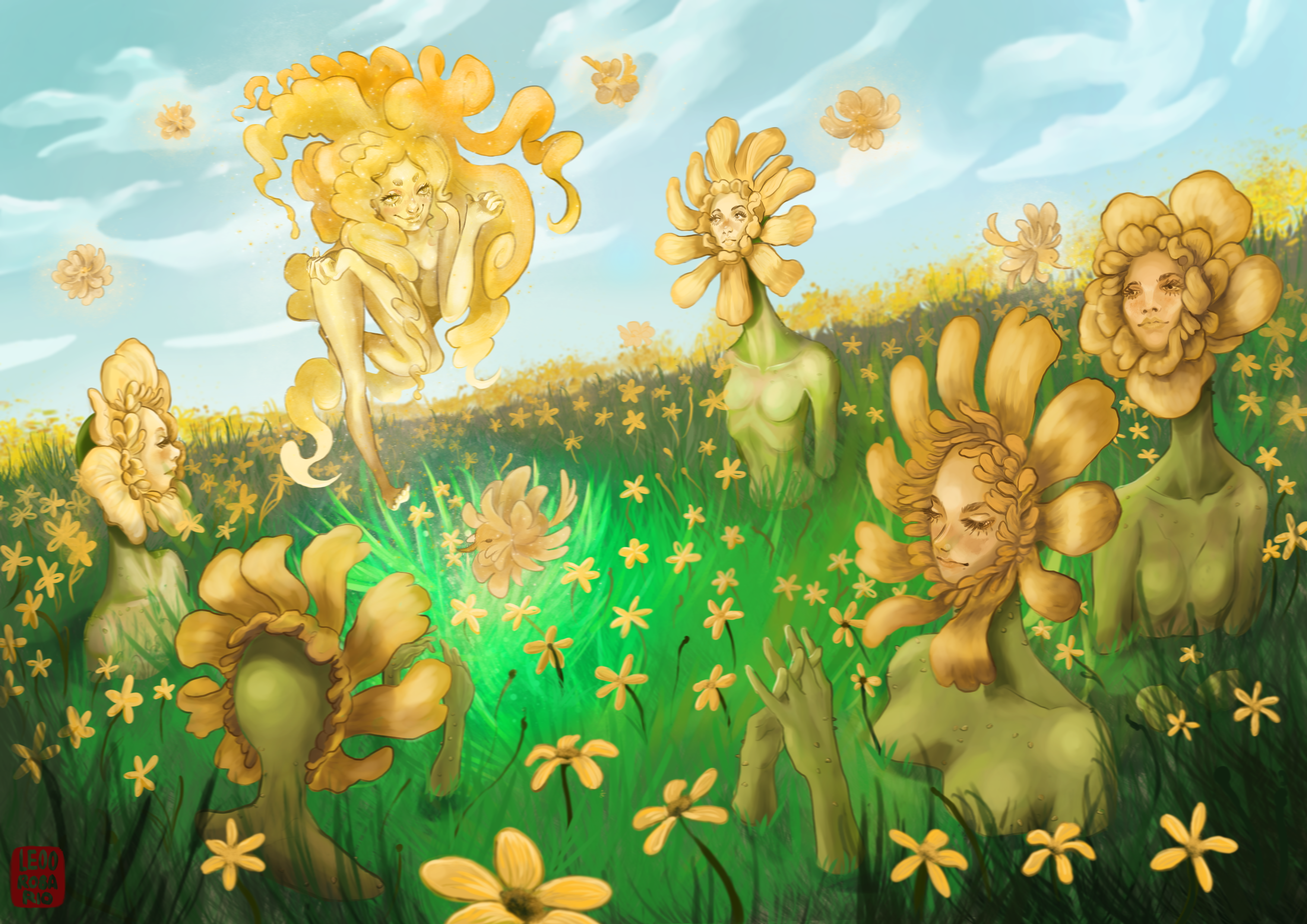 A group of fairies enjoying their environment / Un grupo de hadas disfrutando su ambiente.