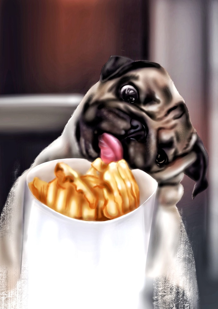 little pug eating french fries
