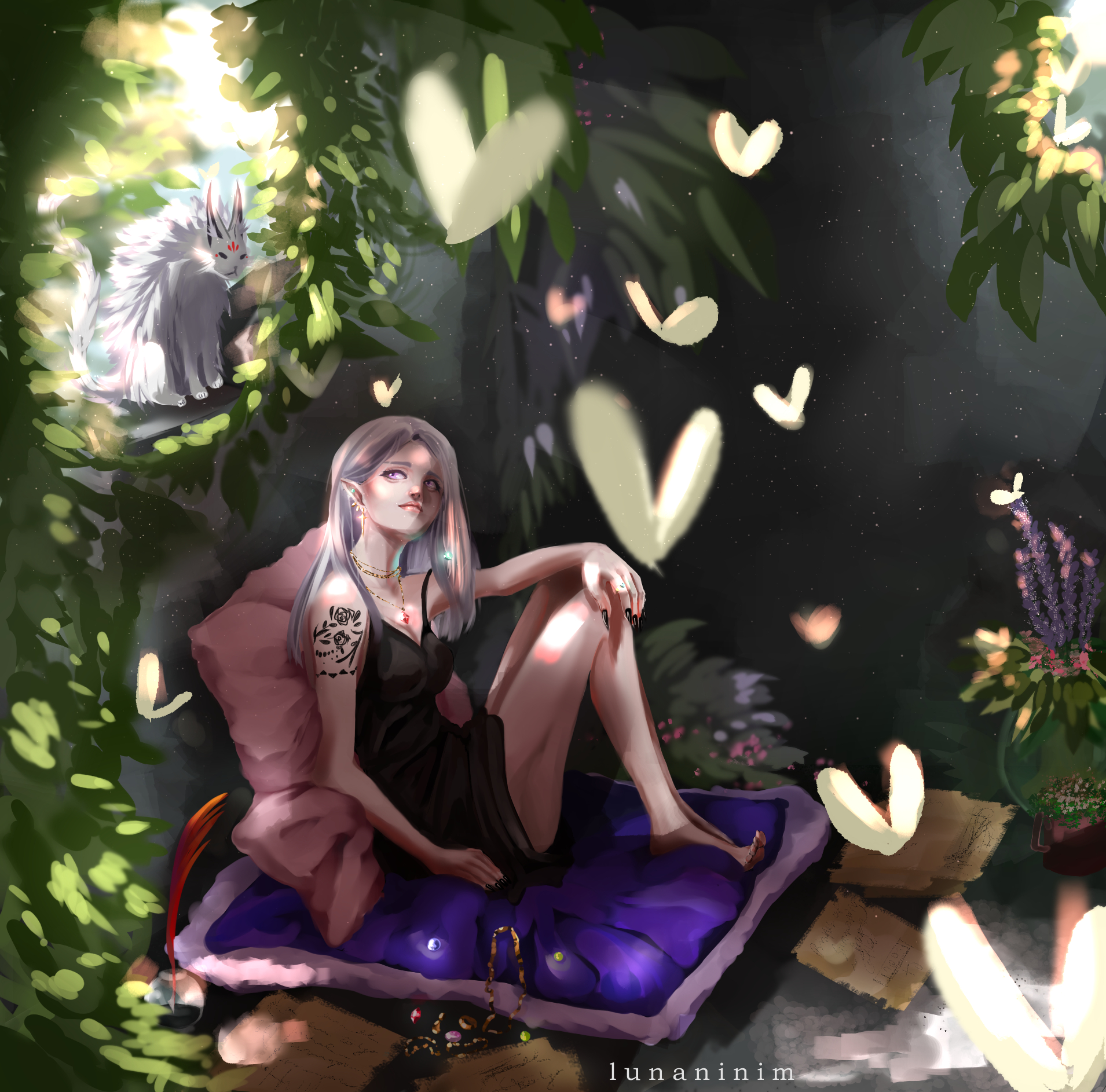 Dimensions: 1910 x 1886 px Creator: @lunaninim The Witch's Apprentice looking at her familiar.