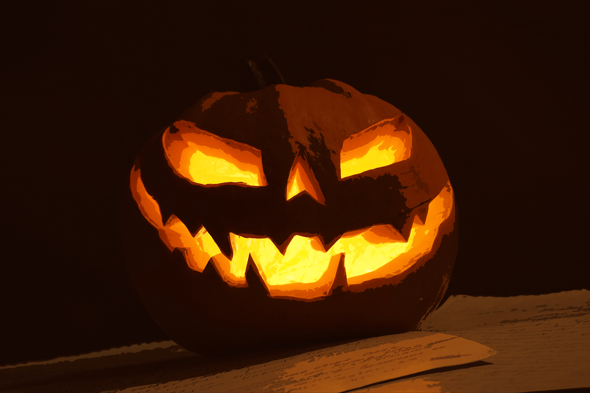 Visual Art in four stages. First, I manually carved the pumpkin into a simple Jack-o-lantern. It happened last Halloween. I photographed it from two angles. Last Halloween I did post a gif with the unchanged photographs. But now I further digitally enhanced each image before combining them into the gif you now see.
