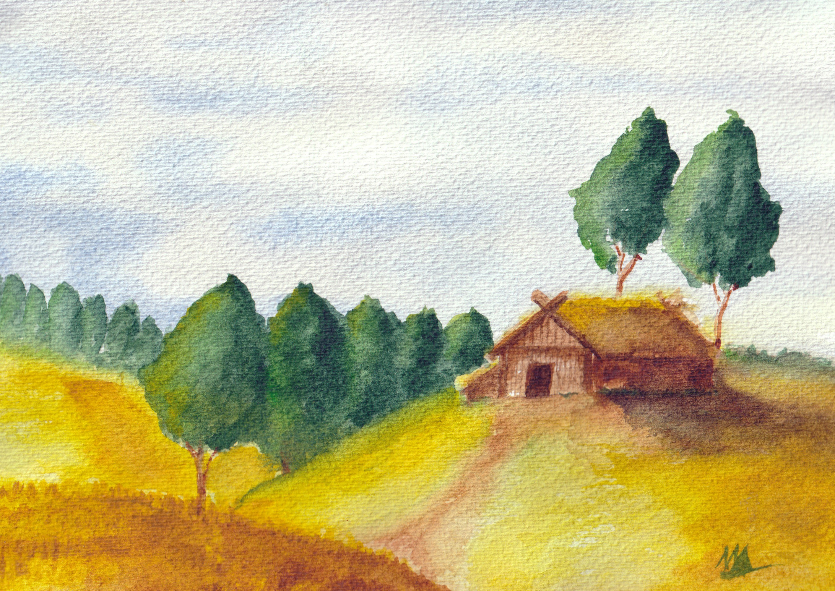 A watercolor illustration for the Western Shores project. Limited edition, 3 copies only. It was intended as a farm before we got another farm illustration. It's a homestead now. Still, let it farm and be farmed here!