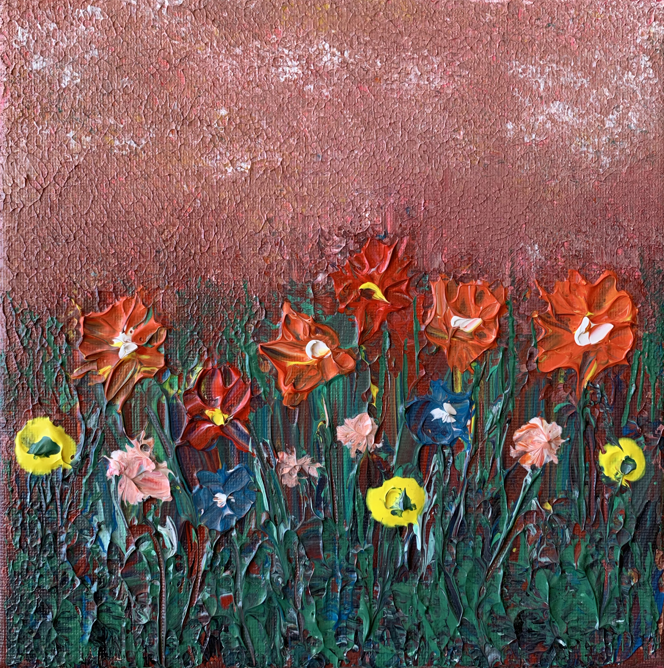 I took a canvas and acrylics and thought about the moment we were going through. That's why flowers and pain ...