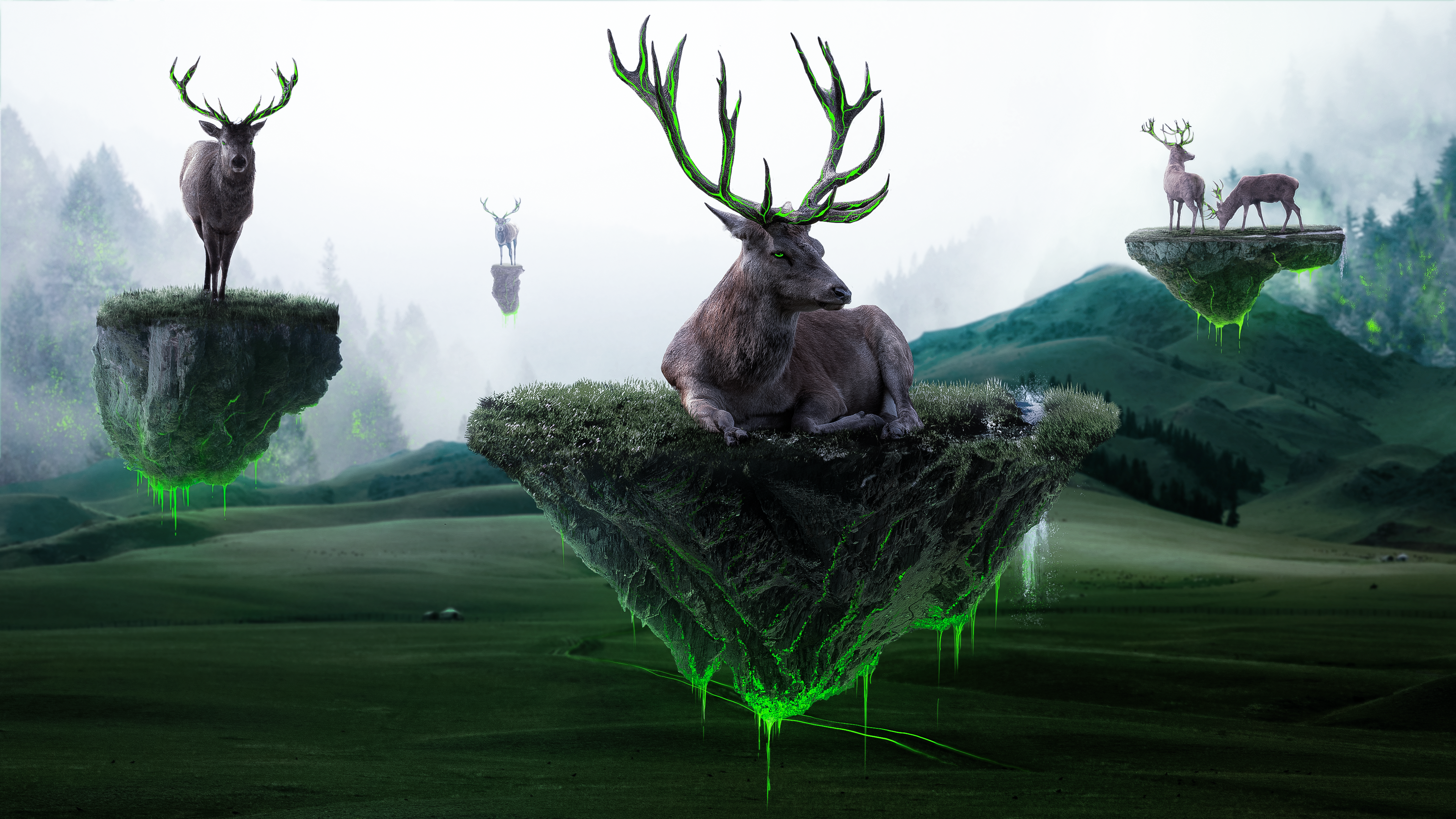 "And the deer, with his strength and grace, bowed his head... and the traveler wept." --- Compositing and photos manipulation. Art by me. --- Dimensions: 3840x2160