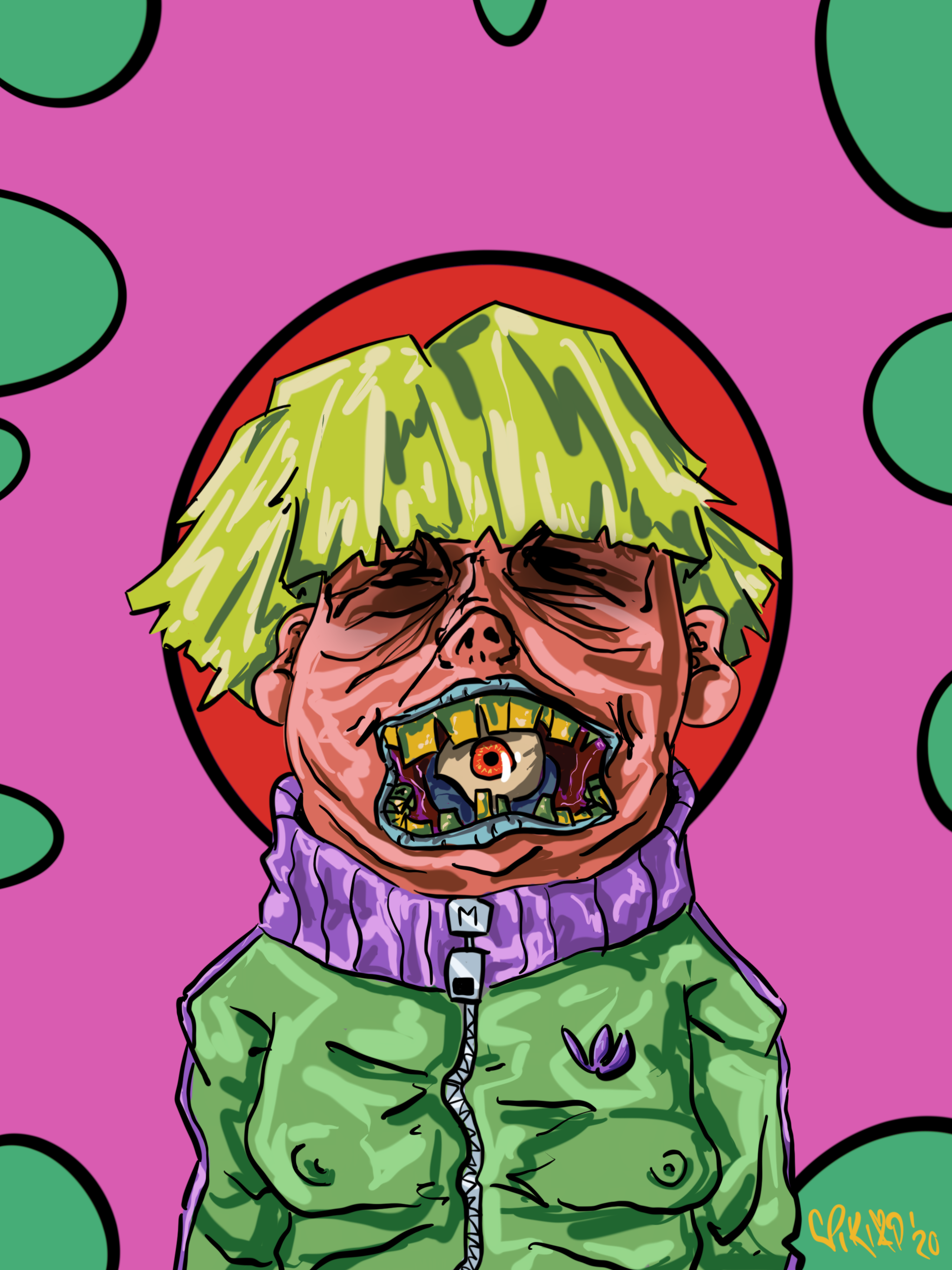 About: When George had sex with a zombie he got infected and during his transformation he became not only a zombie but also a woman. Georgina was born. Nobody knows what it is about the eye in her mouth, she just mumbles incomprehensible things.