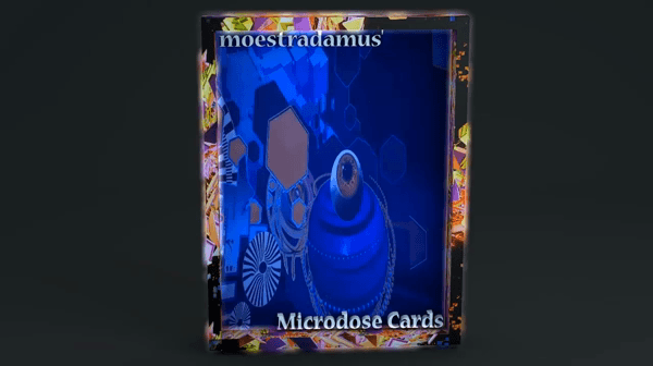 This 3D-animated GIF is multilayered in the digital art software used to created. The animation inside the card was created using Microdose VR (created by Android Jones) alpha 1.2 release. The loop is displayed inside of a 3D-animation used to create the card.