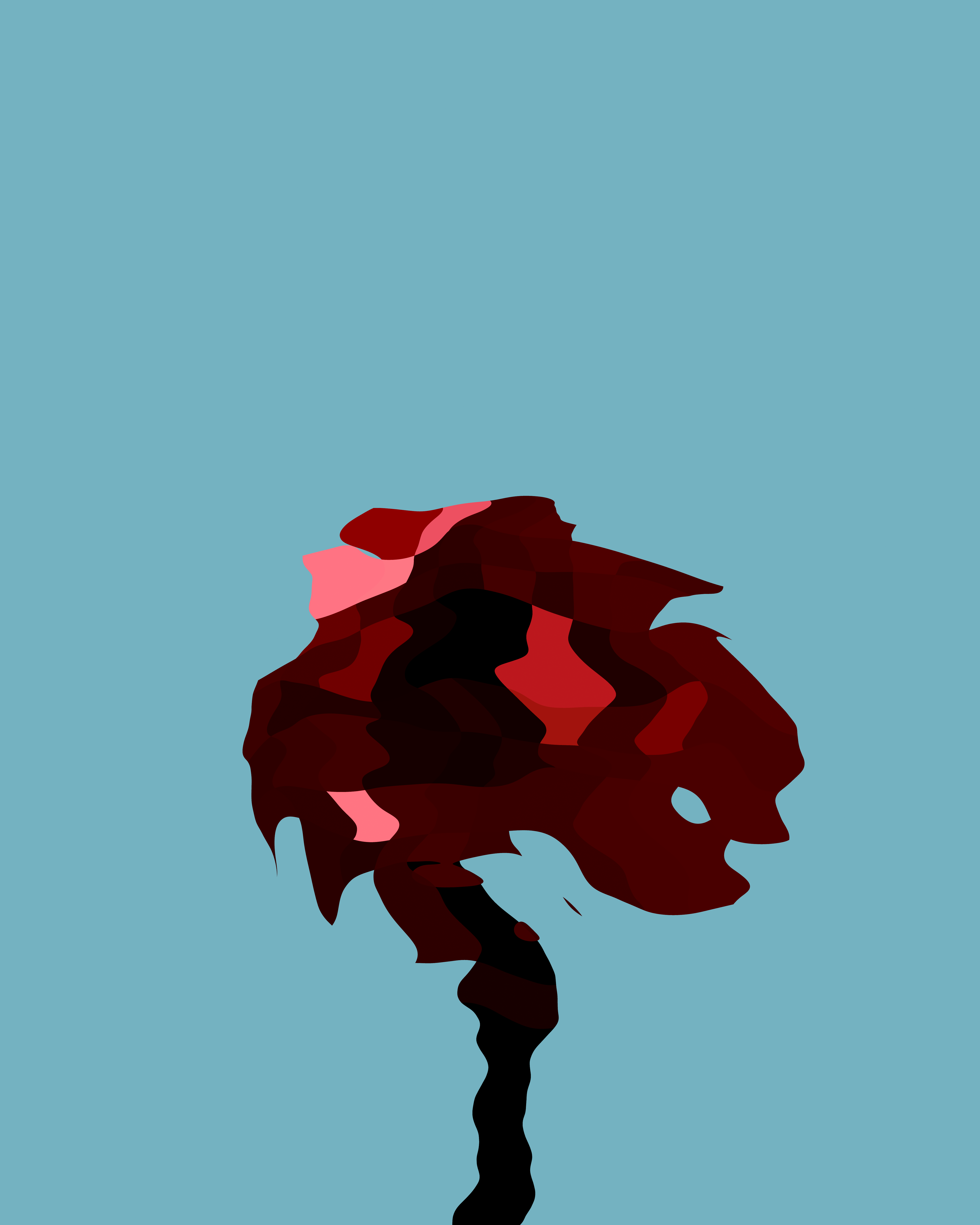 A bloom past its prime. This red flower on a turquoise background is wilting but can still provide beauty. After all, age does not define us. Digital abstract image in cubism type display. Includes high resolution jpg image suitable for printing a 16"x20" poster. Owner may have a physical copy printed for their personal use.
