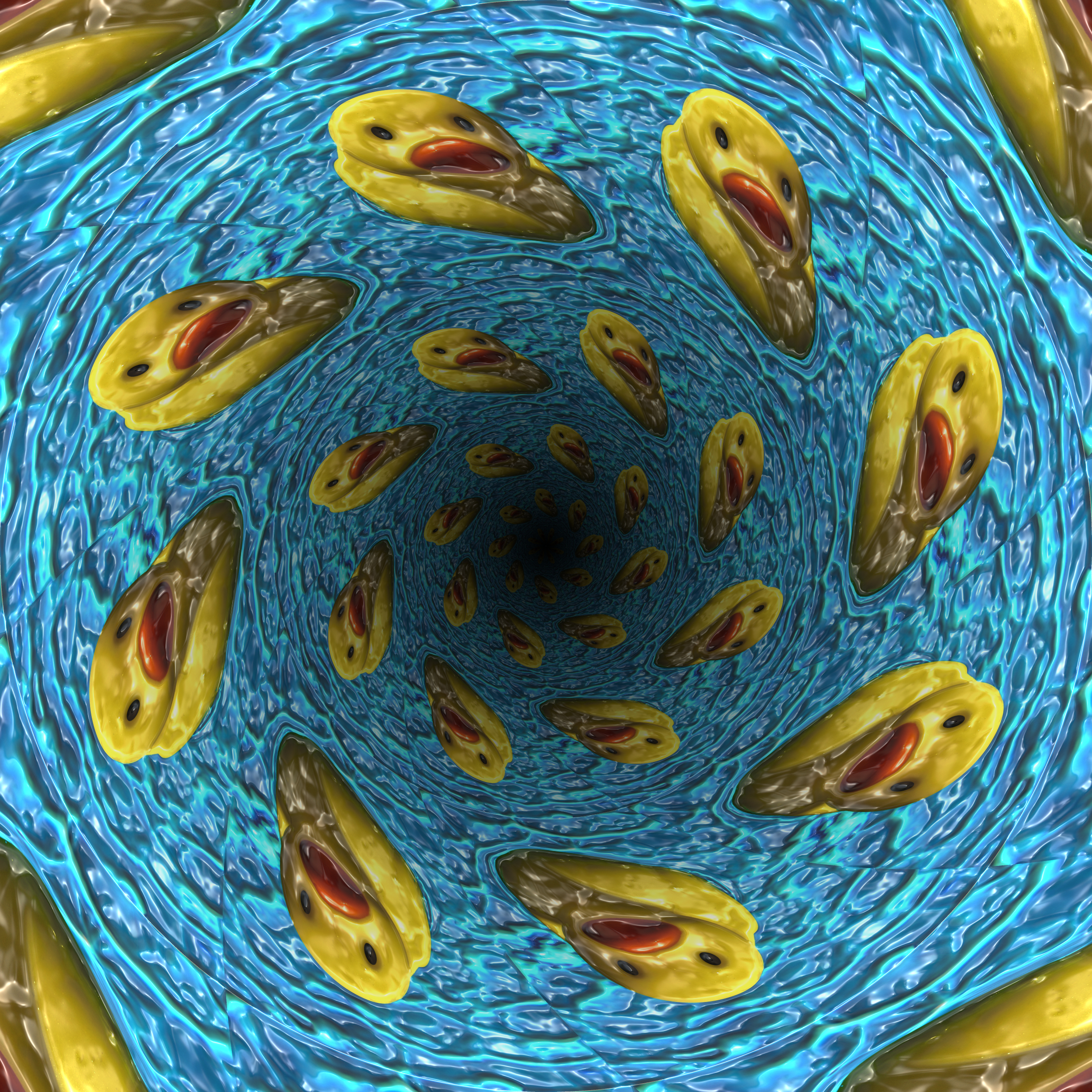 Plastic rubber duckies swirling around and going down the drain. Just for fun and just because. Includes high resolution jpg image suitable for printing a 24"x24" or smaller poster or printed canvas. Owner may have a physical copy printed for their personal use.