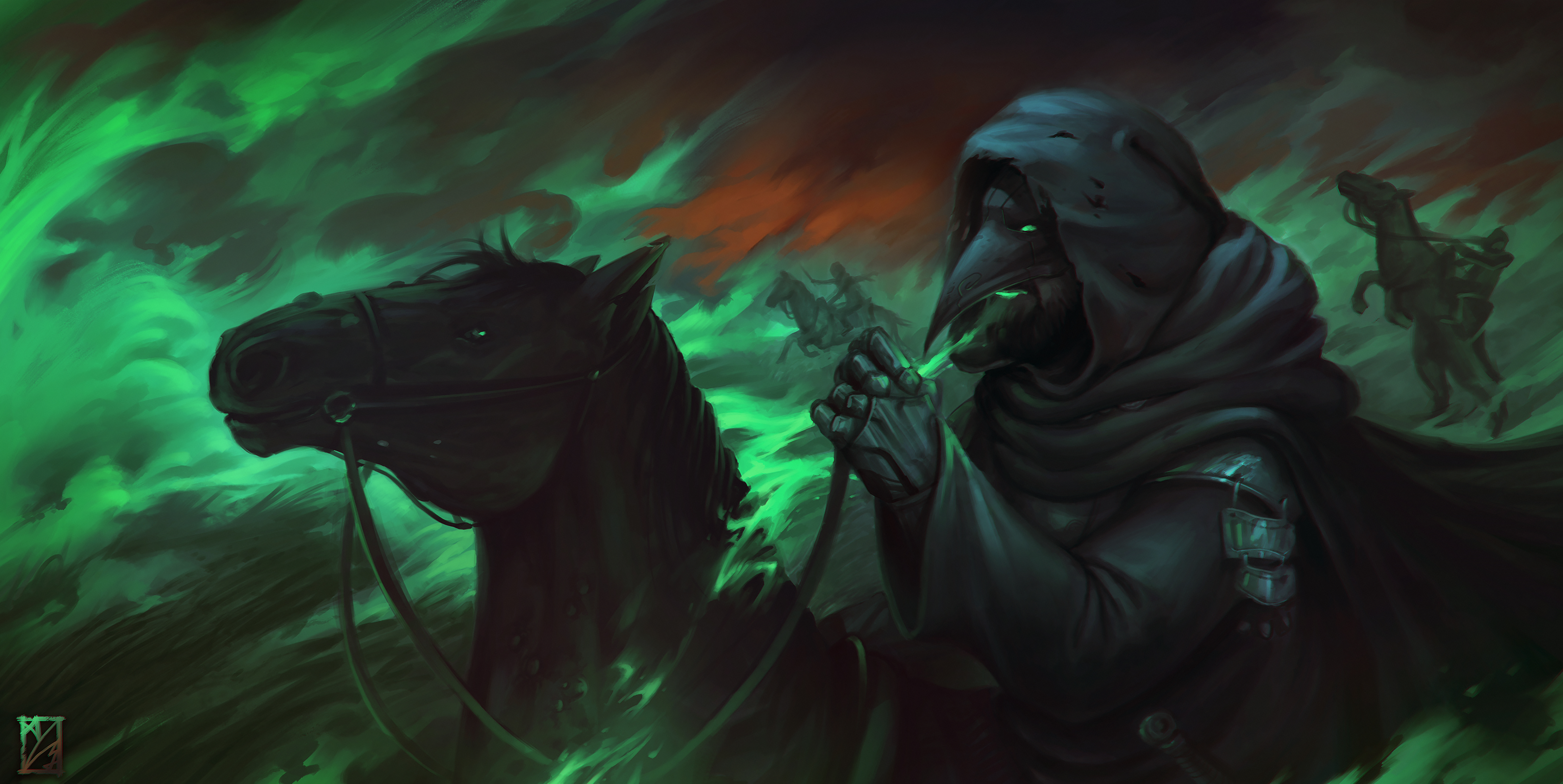 "Pestilence"is an original illustration by Alessandro Musumeci. it's a representation of the european historical concept of the pestilence in a Darker and fantasy vision. PNG |5000x2509 DPI 400
