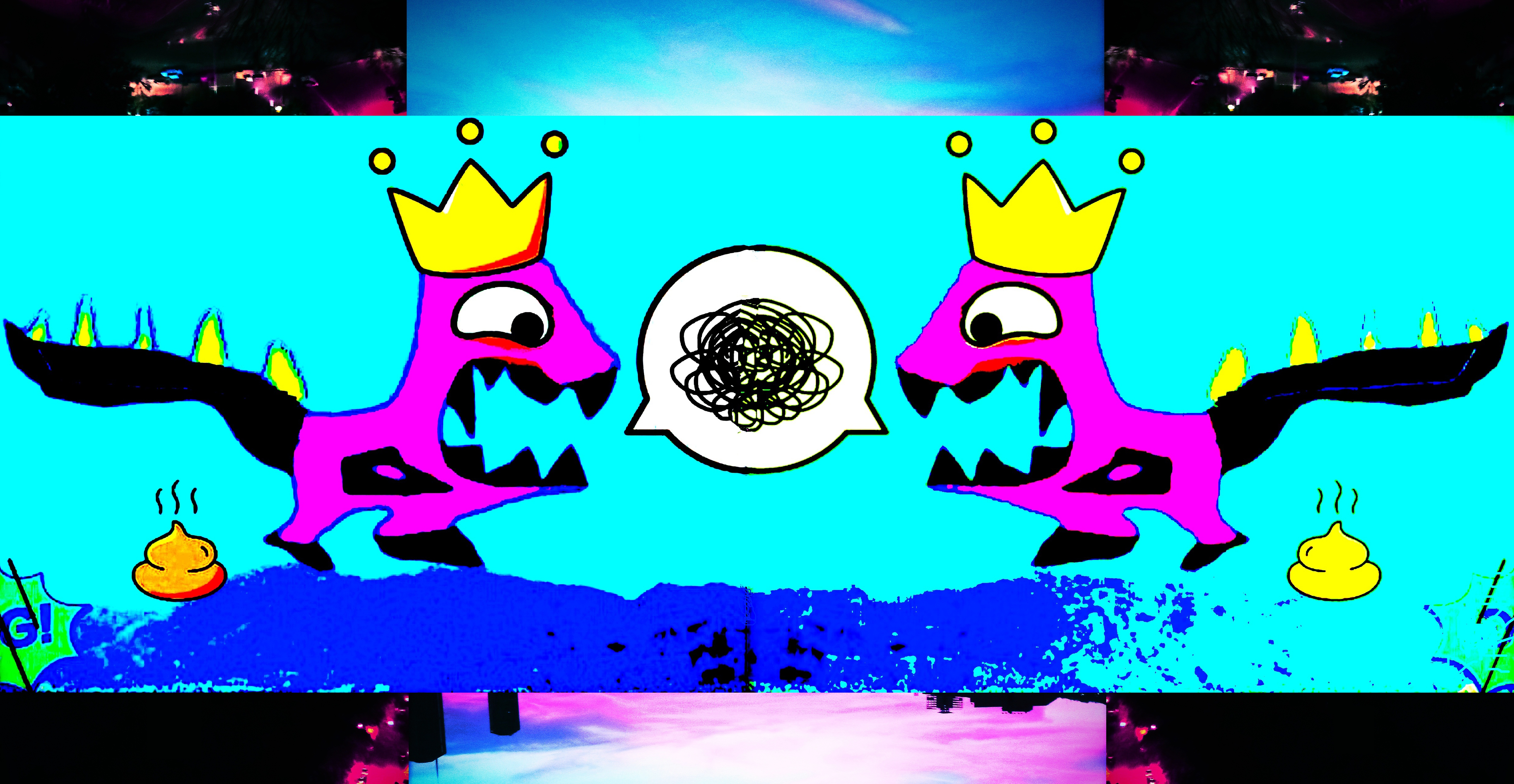 Dino Puku - Comic king arrives to Town - My dino is My 2003 animated character and in 2020 I revisited the dino with cyberpunks colour neon palete.