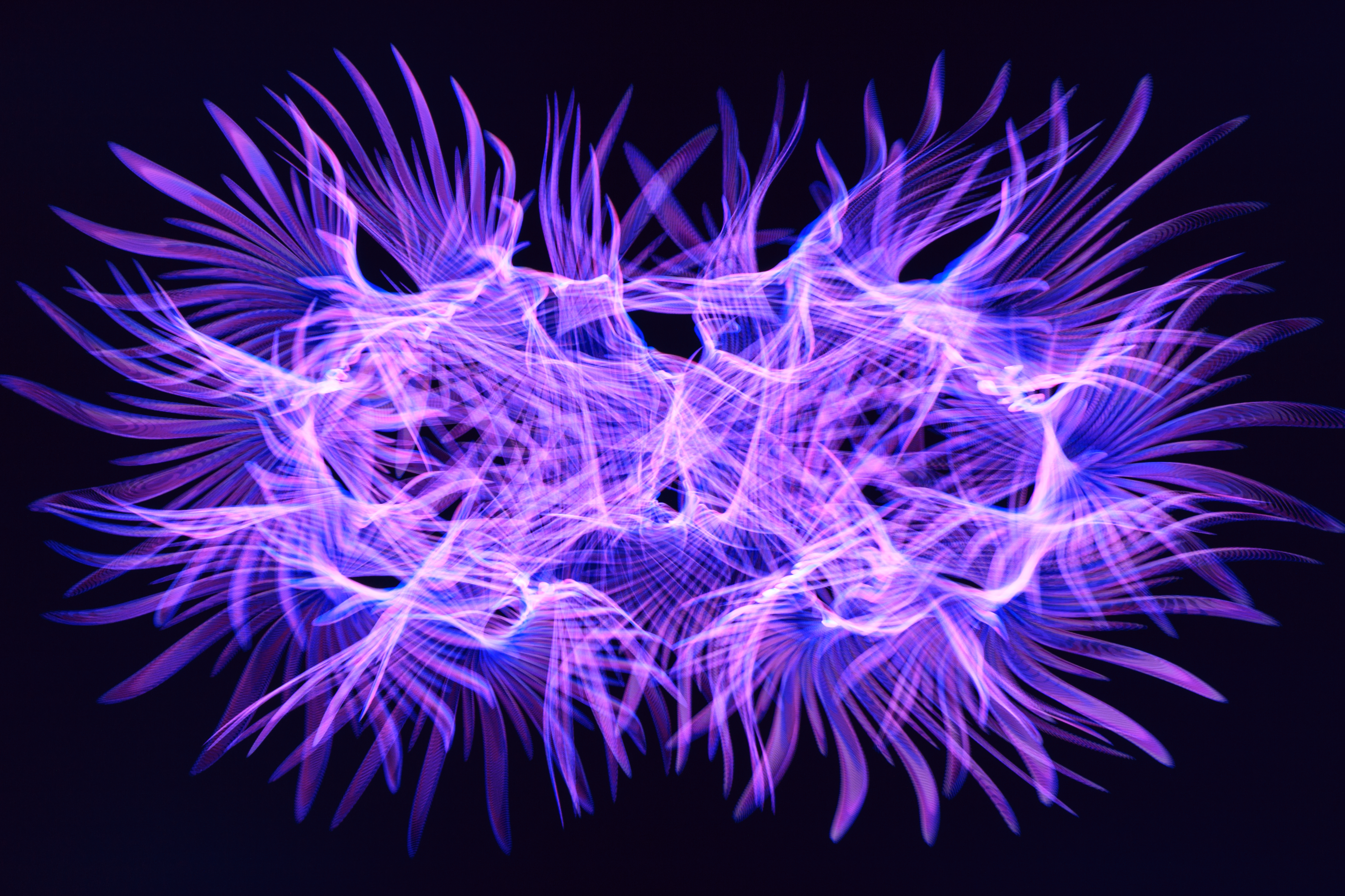 Using a cross-section animation of a 3D object I created to do a long exposure photo. What you see here is not a render but a photo of a screen playing said animation while the camera moves. This is part of my Synthetic Lifeforms Collection.