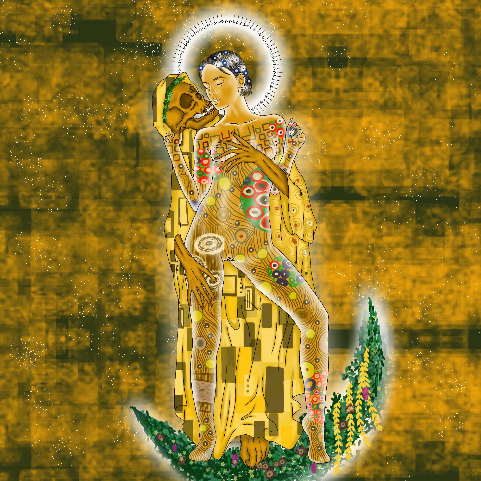 Death is a merciful lover, she waits calmly for her moment, she does not judge your past, but from the moment you meet her, you are hers forever. Reversioning the famous work The Kiss, by Gustav Klimt.