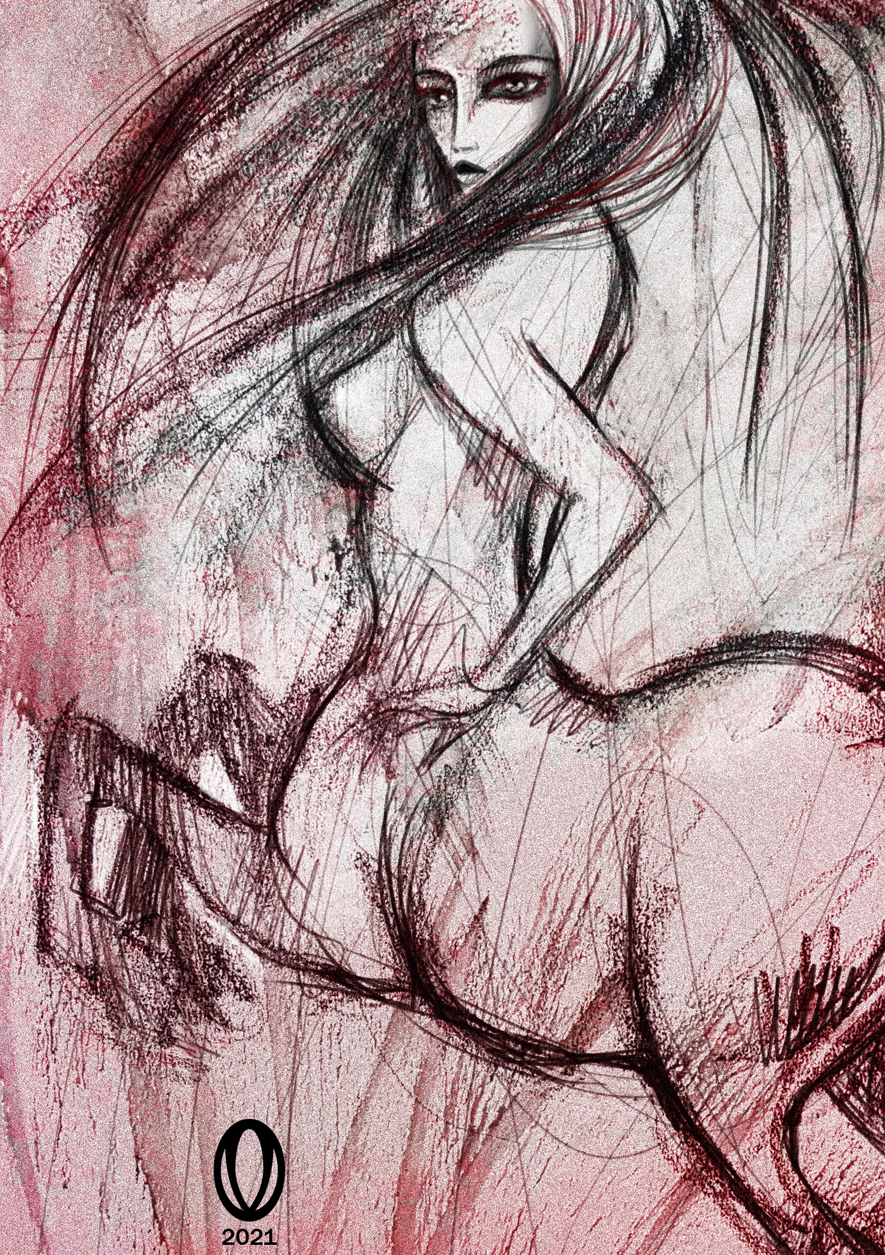 Fantastic creatures inspired by the figure of the centaur, simple digital drawings with fast strokes, each different and with its own personality