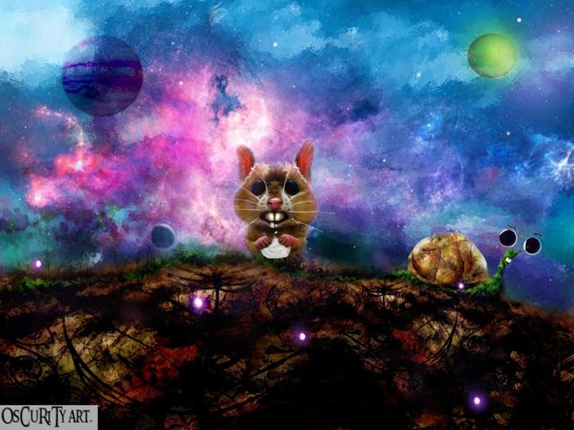 Who would imagine, that the mouse would give Fabio some space cookie! and he would like it so much! High resolution image but small in size, 600x600 just for fun collecting! Corel painter (digital airbrush), 1.20hour (speed painter), non-commercial!