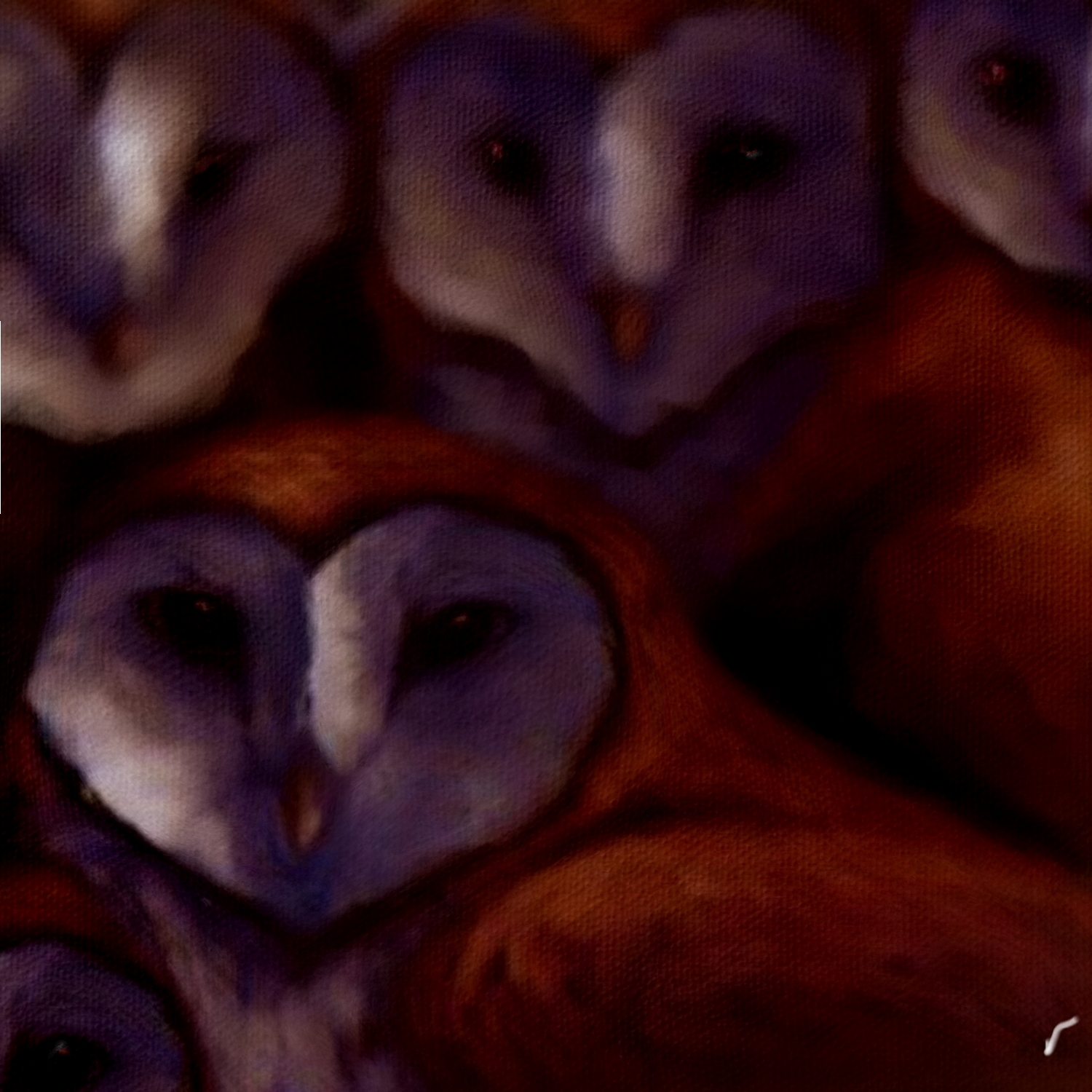 This chalk painting is a realistic textured canvas with a set of owls with strange looks! reflects the beauty and intelligence of these animals