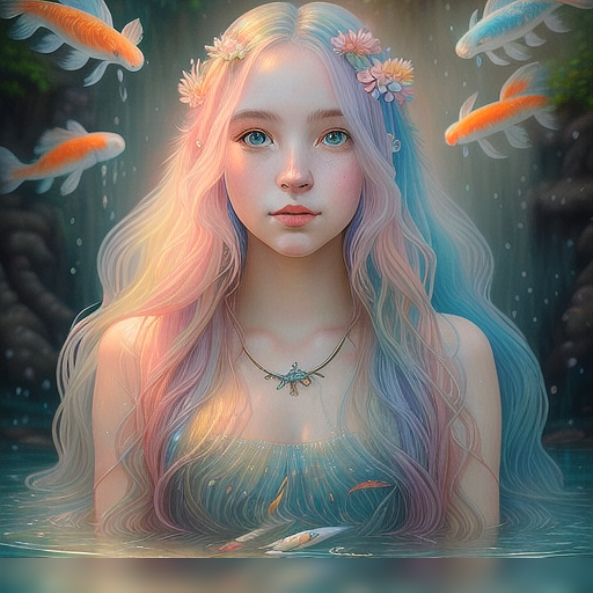 The beautiful Ondina, a magical and mysterious creature, is the protector of lakes and rivers. With her enchanting voice she attracts men with her beauty and laughter. First of a serie of 3.