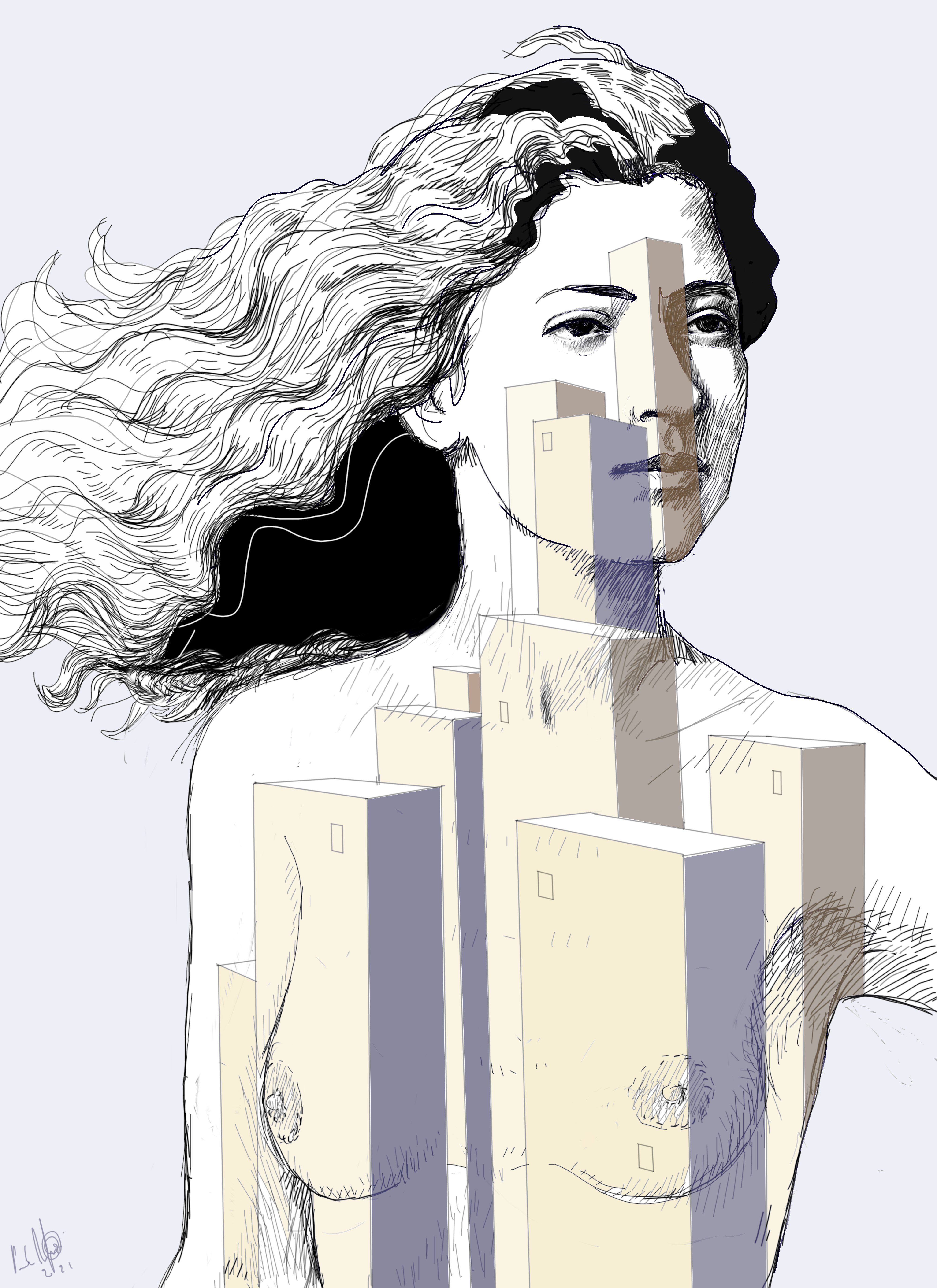 Original digital creation made using Gimp and Wacom Intuos Pro. Realistic girl with surrealistic environment