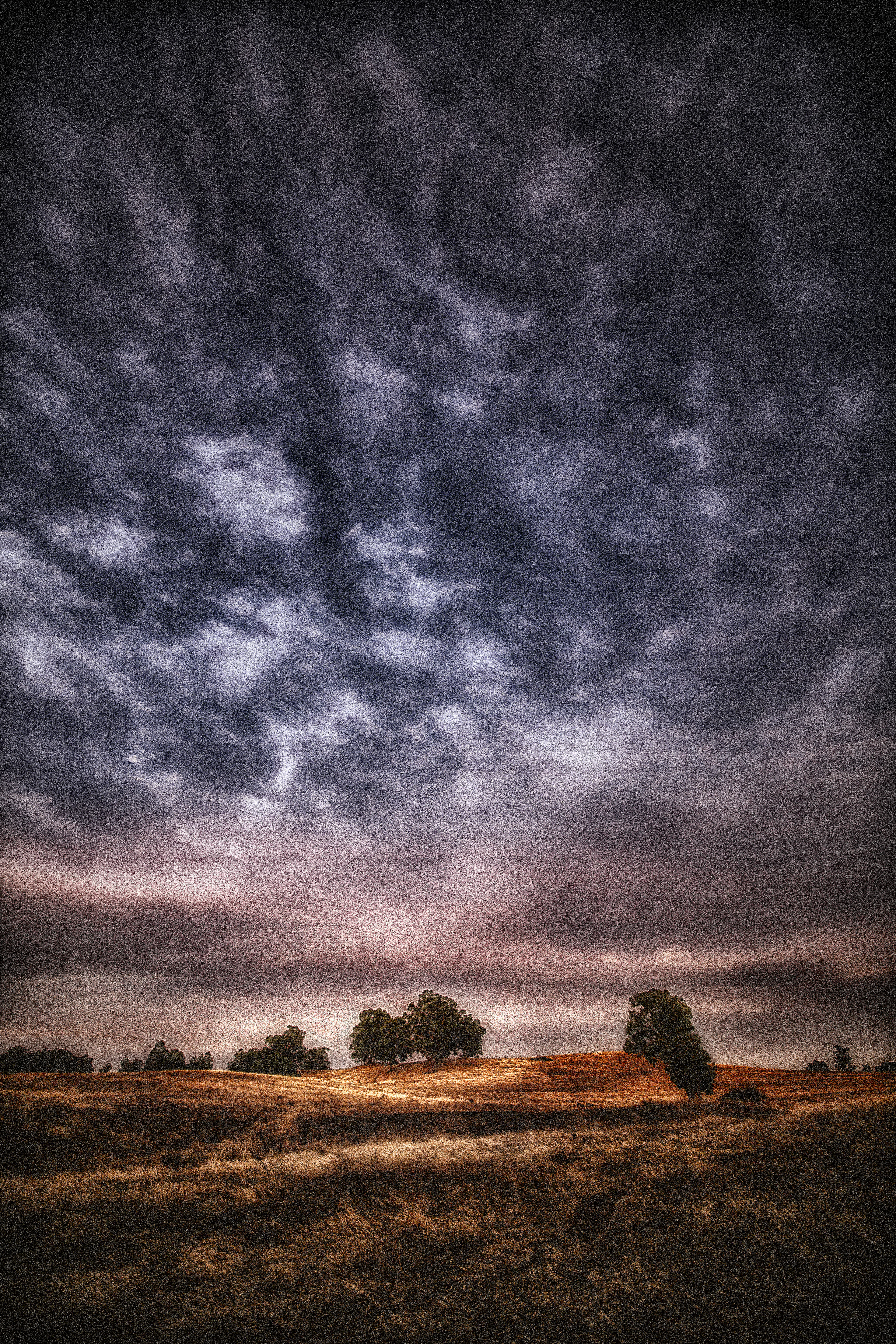 Behind my wife's late grandfather's farm in Mullalyup, Western Australia is a hill that we would climb to watch the sunset. This piece is an interpretation of the scene, it started as a photograph taken on a very misty morning with fog rolling through. I've then used Adobe Photoshop to paint over the photograph and make it into something that more accurately reflects my fond memories and experiences spending time there.