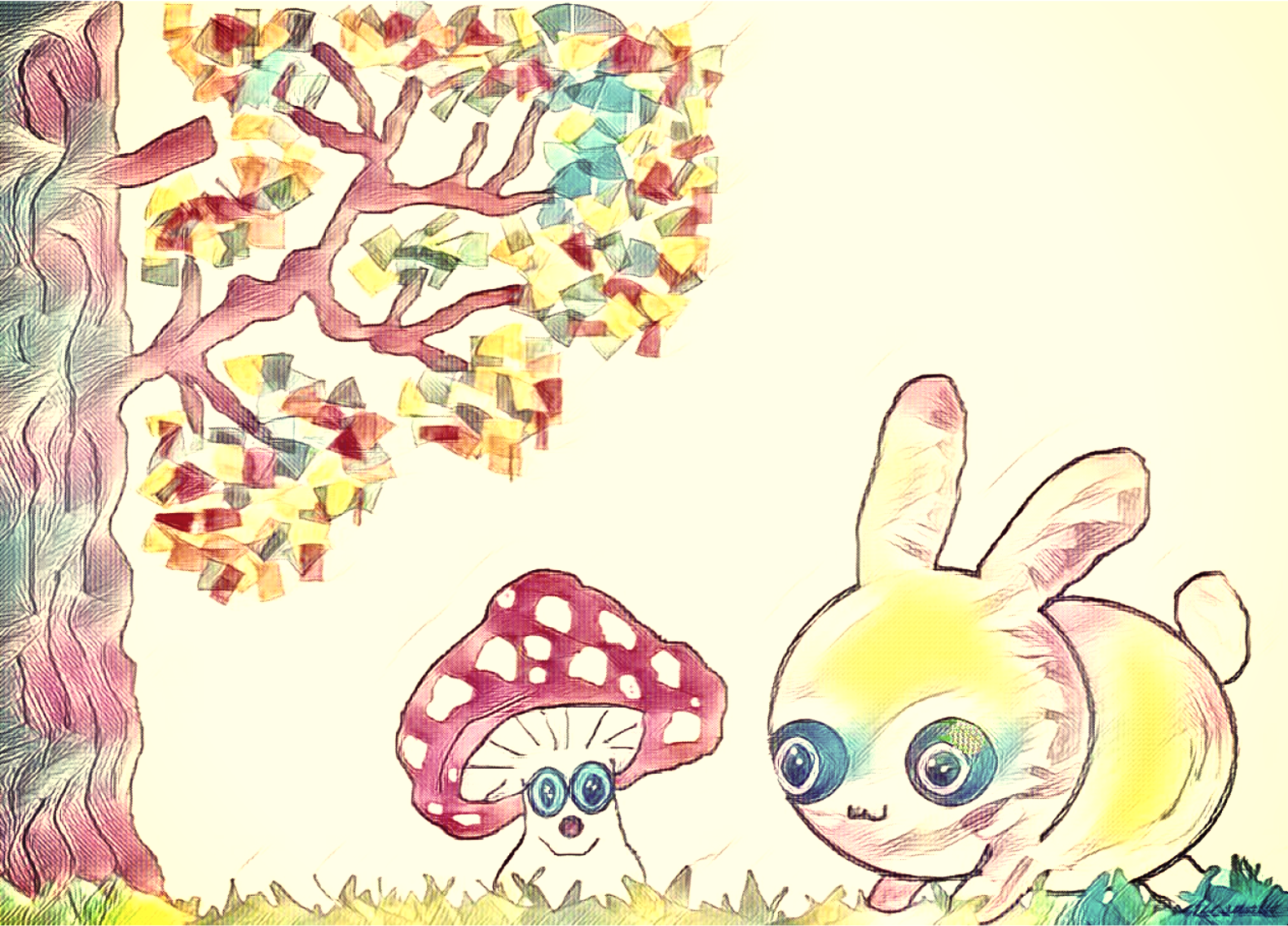Mushrooms make happy right? Perhaps the Bunbun is on the right track! Cuteness overload no matter where you look at this image! Creator is not responsible for giggle attacks felt by the buyer! A nice and super sweet background for your pc? Or just something to be happy with!