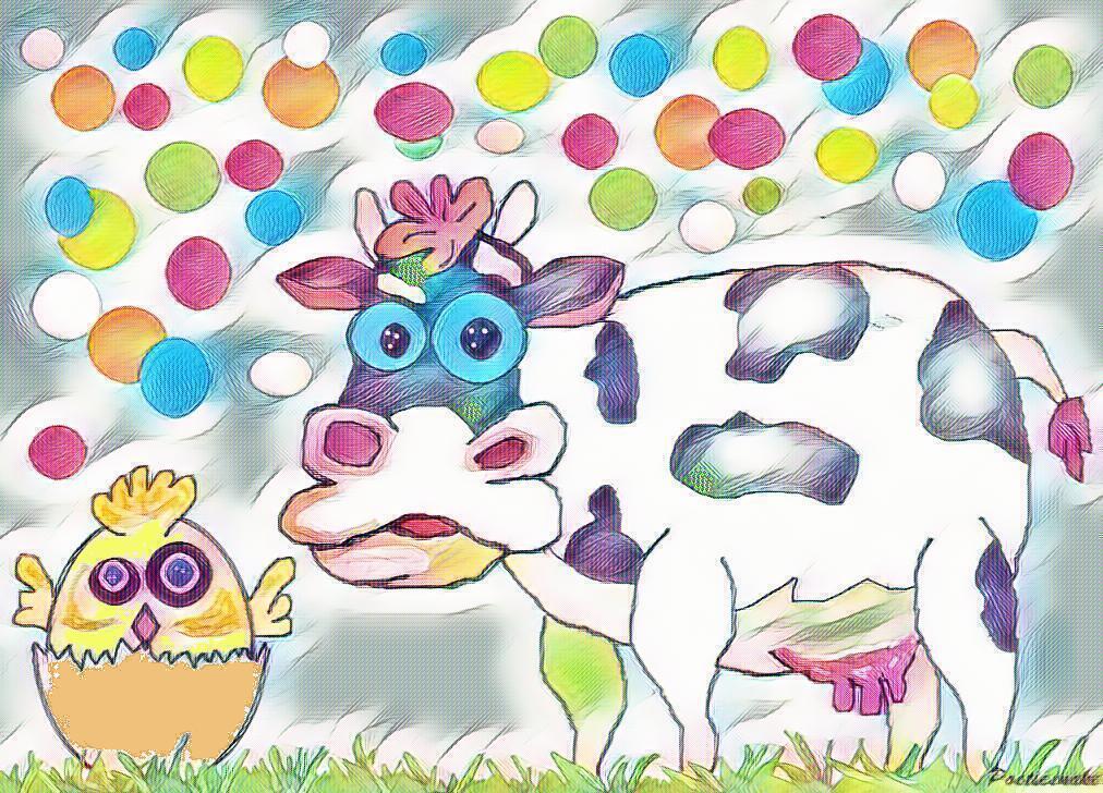 Cow and Chick because they rock! Cuteness overload no matter where you look at this image! Creator is not responsible for giggle attacks felt by the buyer!
