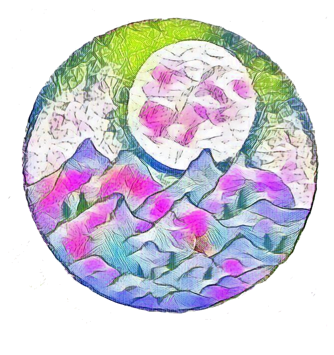 Moon over the mountain in Doodle style! I often dream of views like this. To keep them foreverI turn them into doodles. Drawn with Staedtler pigment markers on paper. Colored digital after uploading to digital.