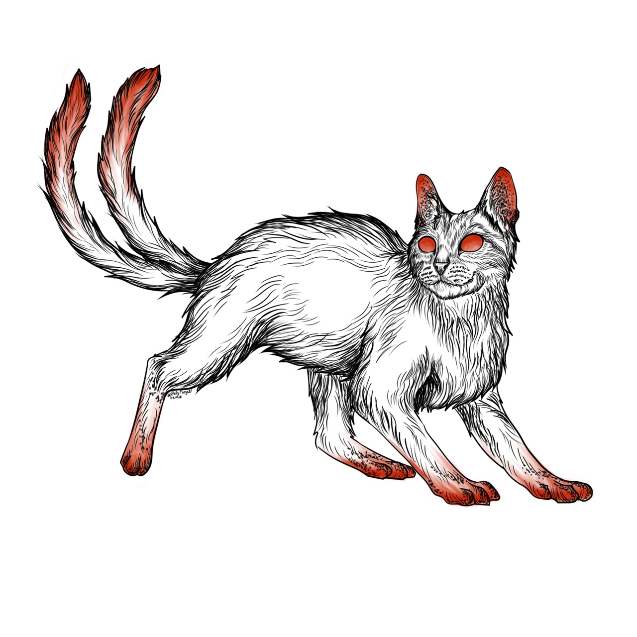 Unusual fairy cat with two tails! The more tails, the stronger it is.