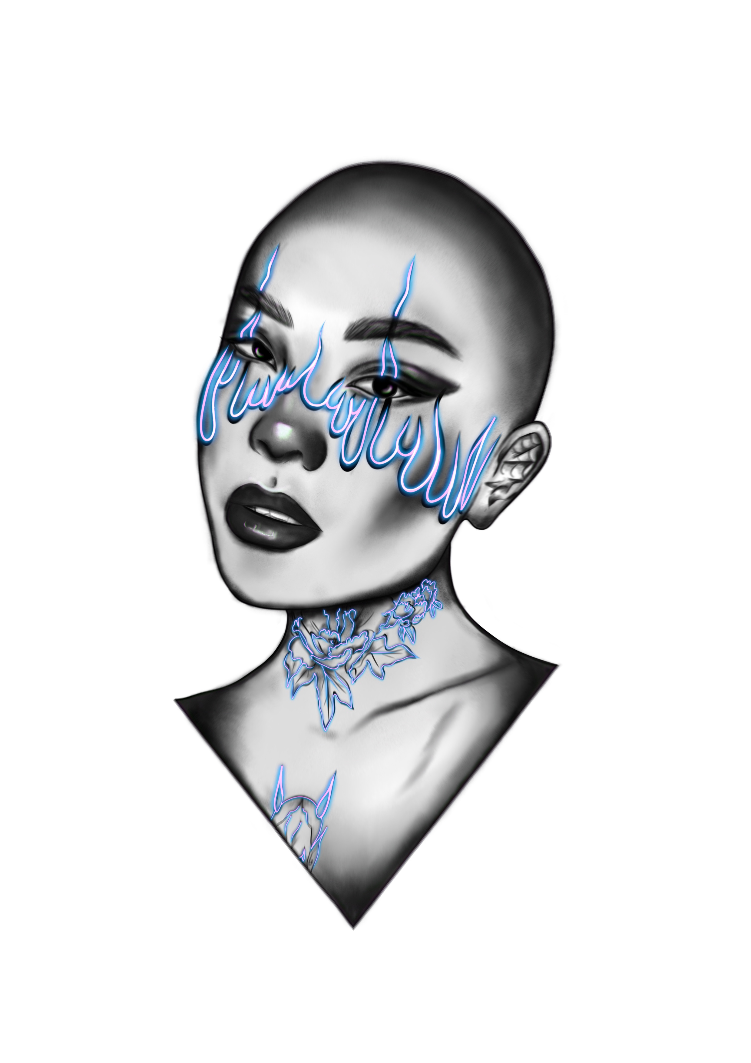 Unusual girl with tattoos on her face. Sketch for tattoo