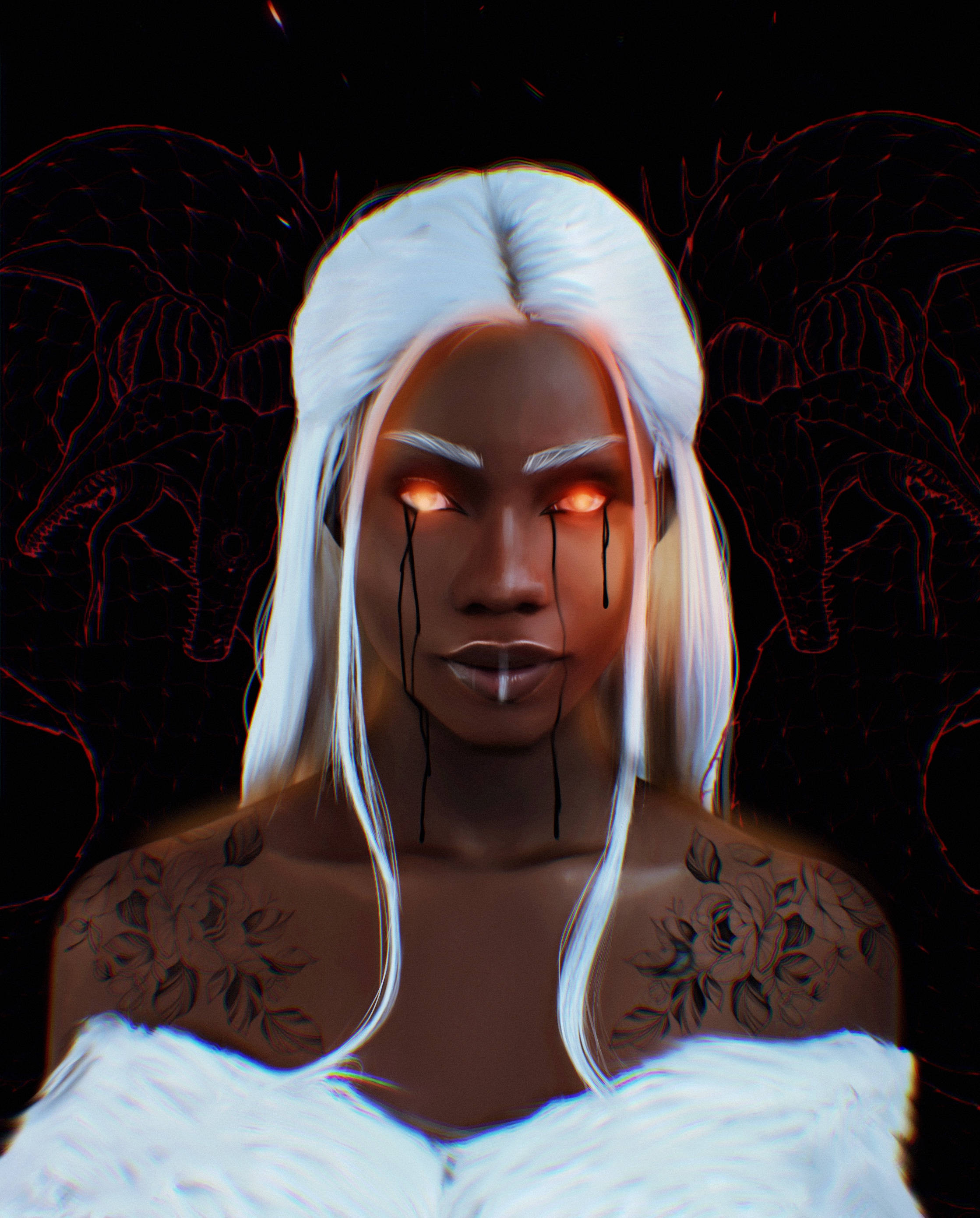 Bright girl . With the symbols of a snake, expressing rage, anger, danger, cunning and fast as a snake.