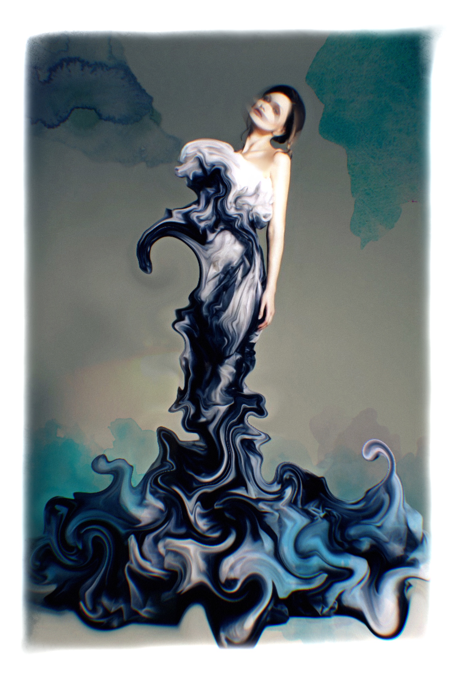 Silhouettes of the sea ghost of a girl, in a dress like sea waves