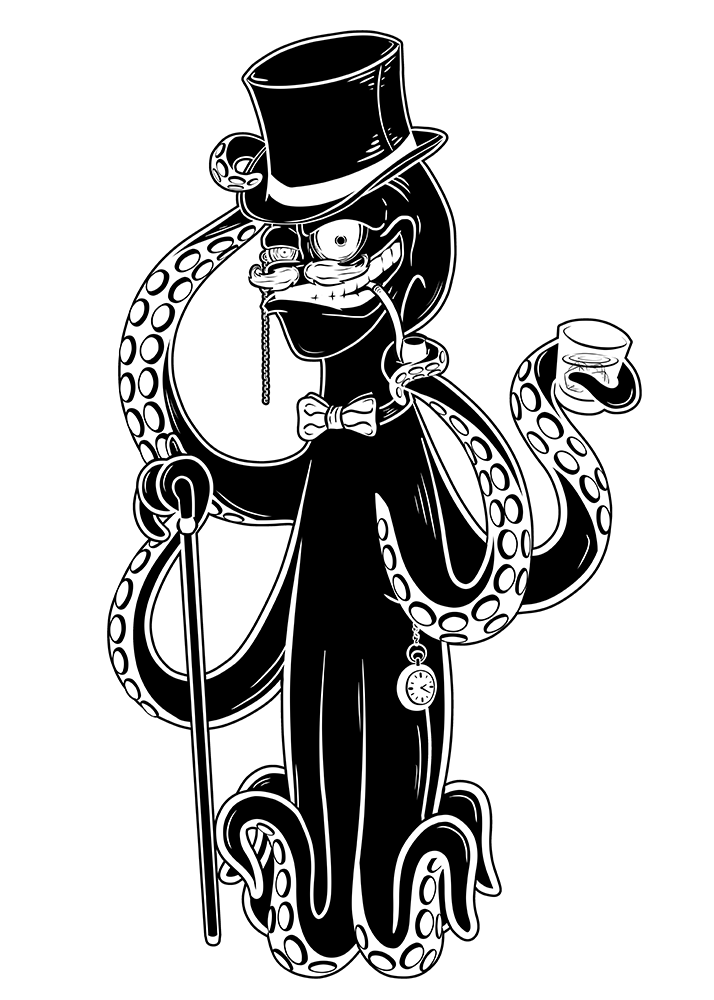 Gentleman octopus - my original character named Okta. This "sophisticated" octopus likes to enjoy good whisky drink and pipe.