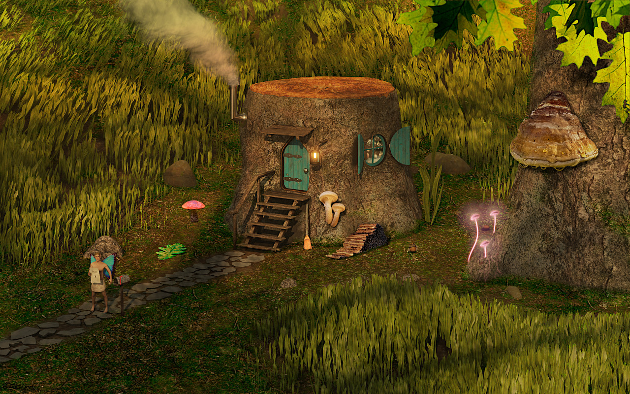 A relaxed and secluded life in a deep forest. The home is a tiny hut, which is actually an old tree stump, surrounded by the magic of nature. Nothing could spoil this beautiful idyll, right?