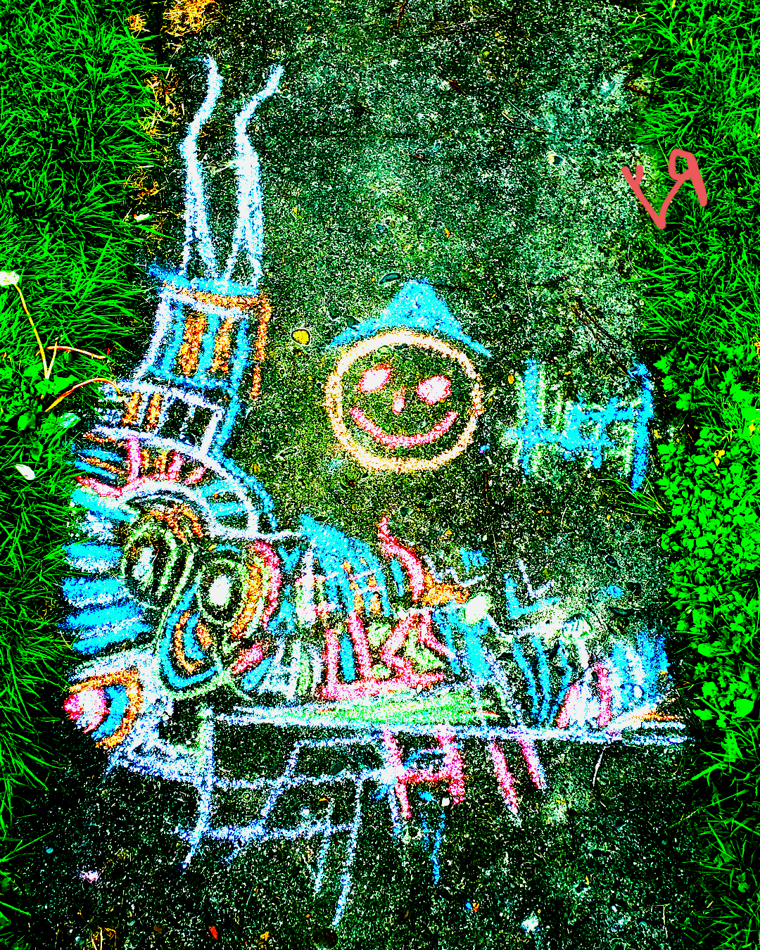 [Sidewalk chalk on sidewalk with some serious color manipulation.]