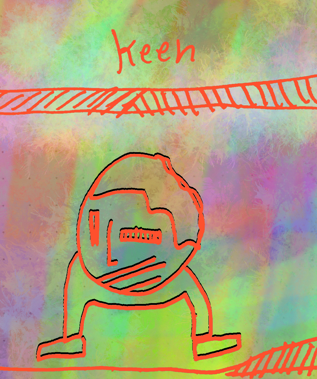 [Liner pen on notebook page with digital embellishments and color.]